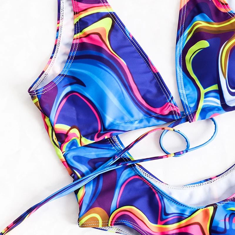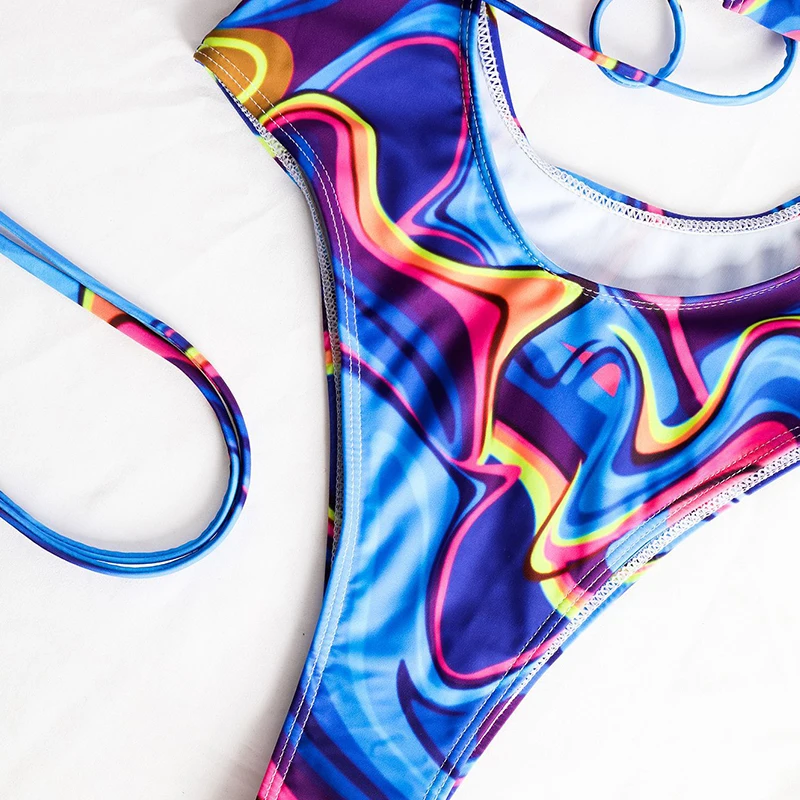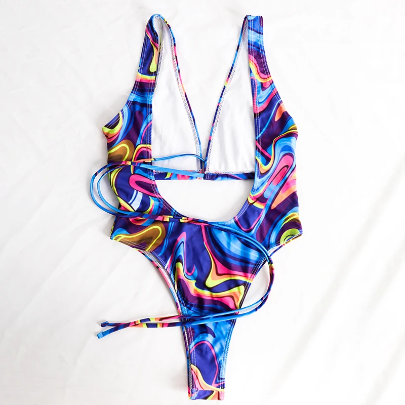 Fleepmart print one piece swimsuit sexy women bandage bathing suits high cut swimwear conjunto biquinis feminino trajes de baño mujer