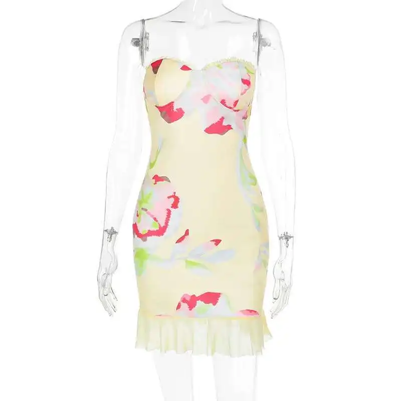 Fleepmart Printed Off Shoulder Backless Sexy Dress Women 2025 Elegant Party Dress Strapless Bodycon Mini Summer Dress Vestidos