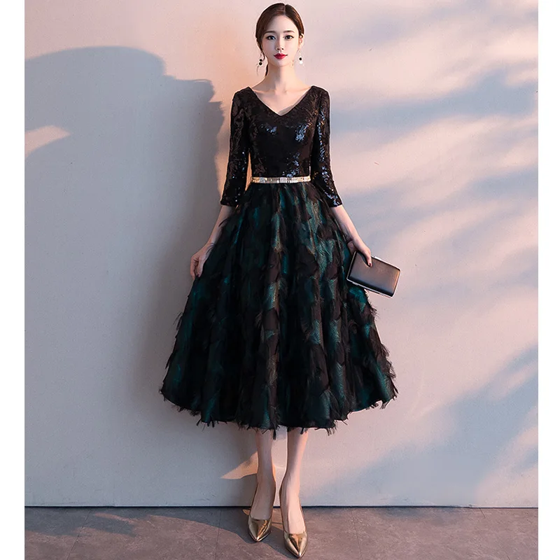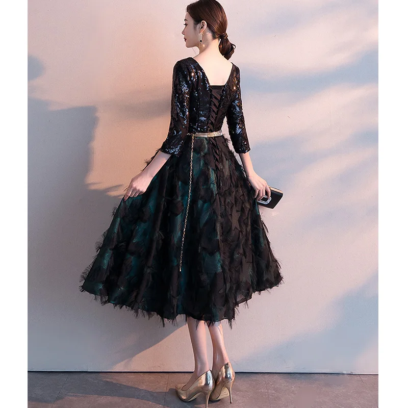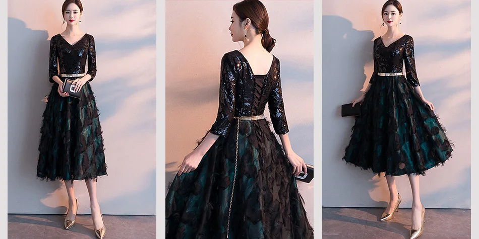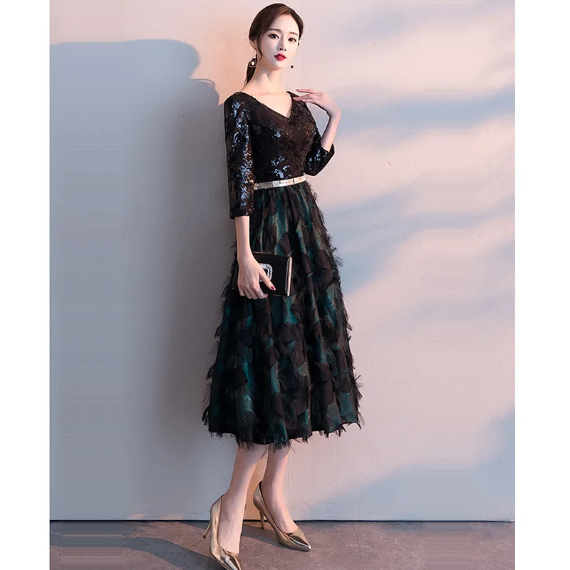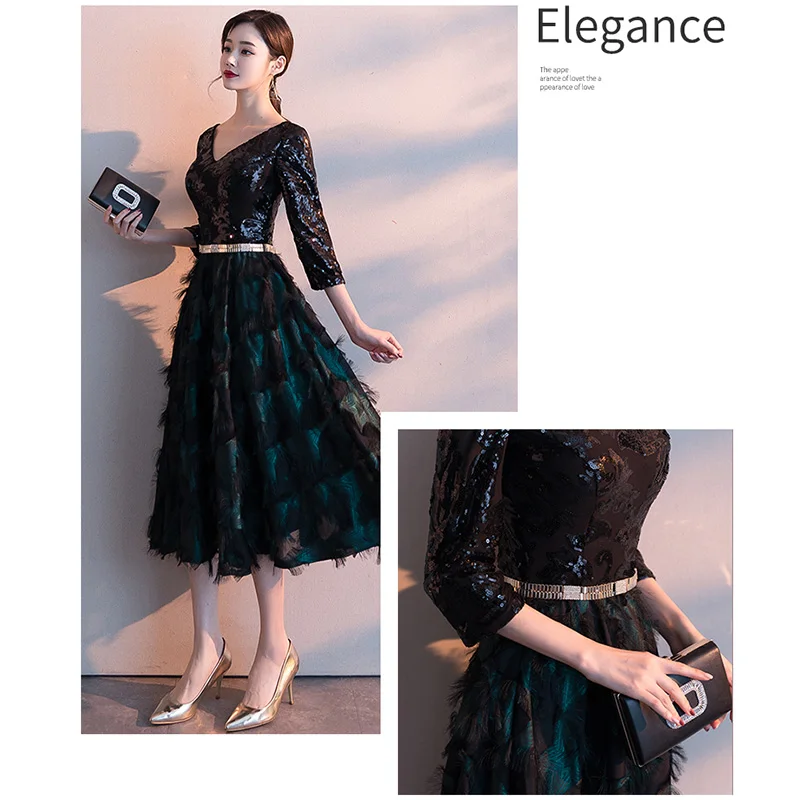 Fleepmart Prom Dress For Women Plus Size Formal Gowns Elegant Half Sleeve Knee-Length Black V-neck Vestidos De Gala