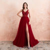 Fleepmart Prom Dresses Long Sexy V-Neck High Split Tulle Sweep Train Sleeveless Evening Gown A-Line Backless Vestido De