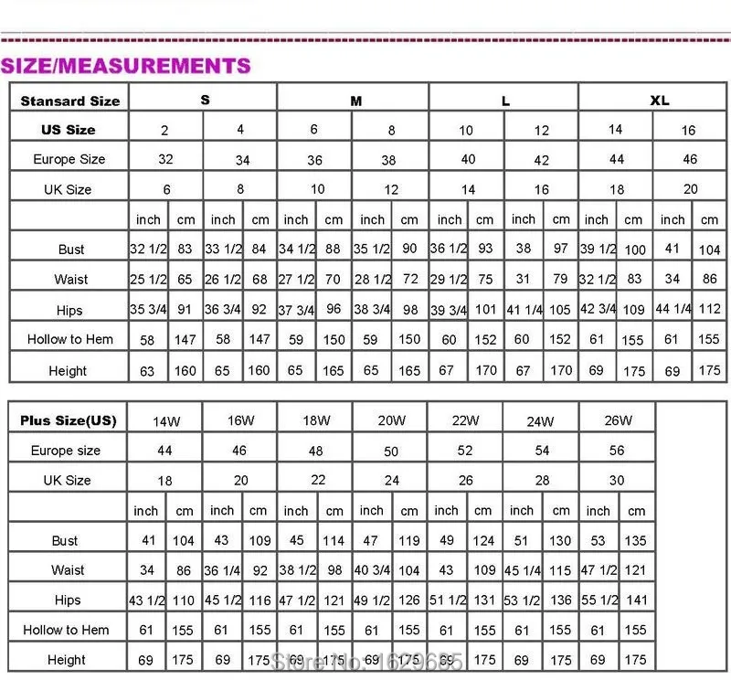 SizeBustWaistHip