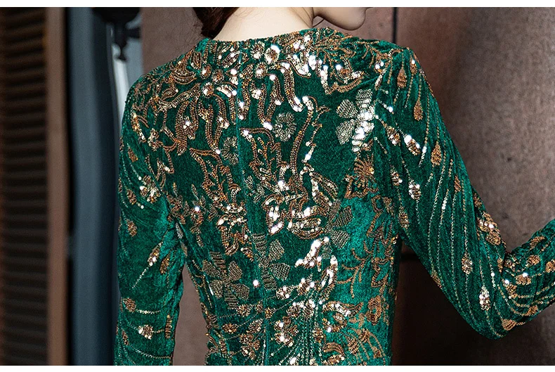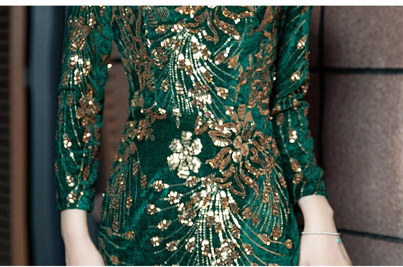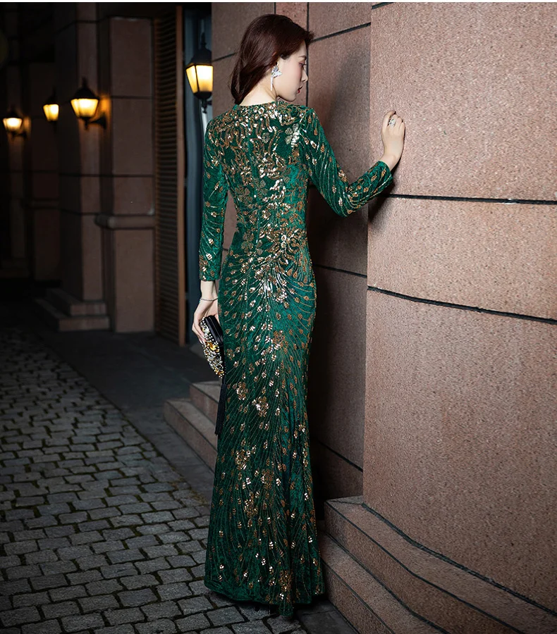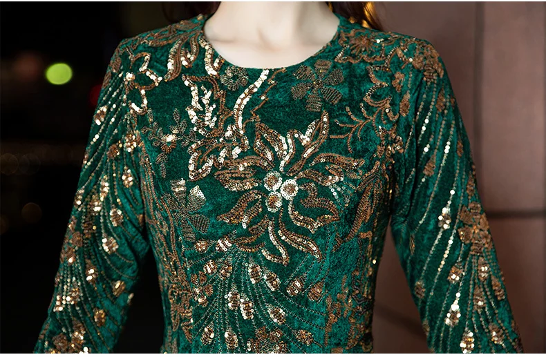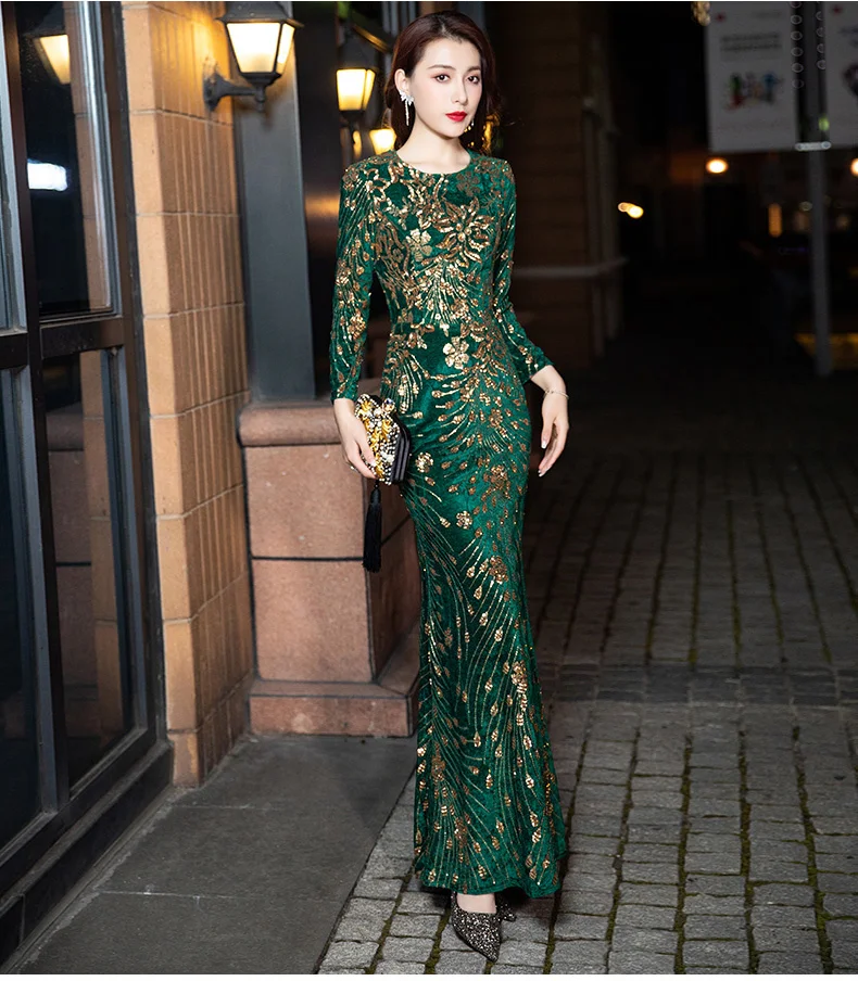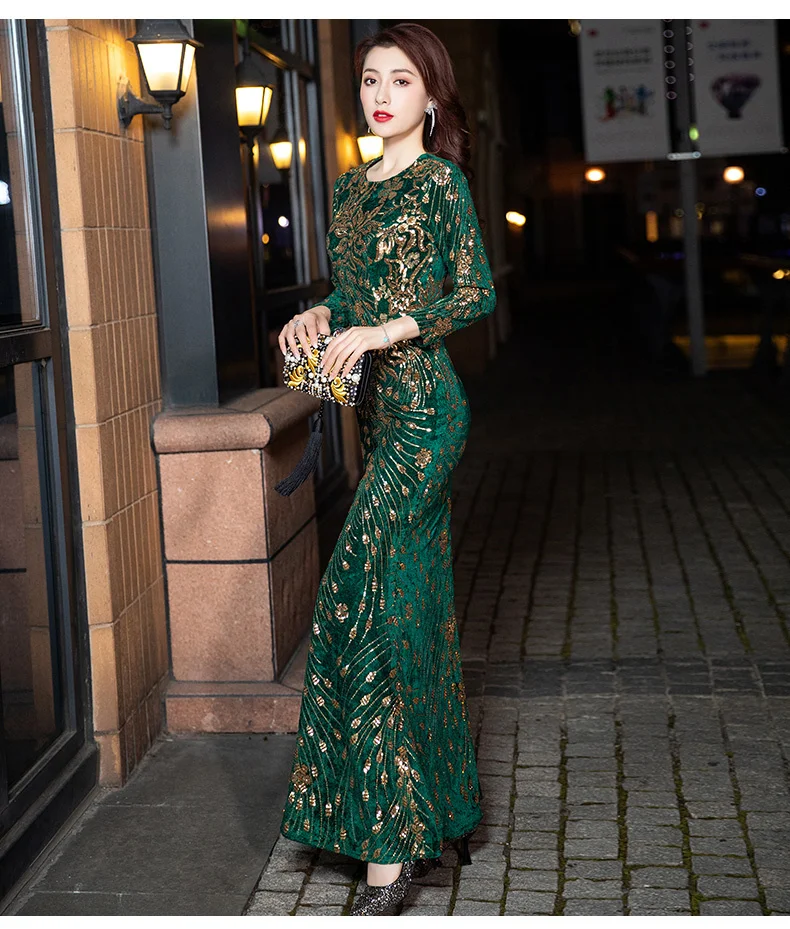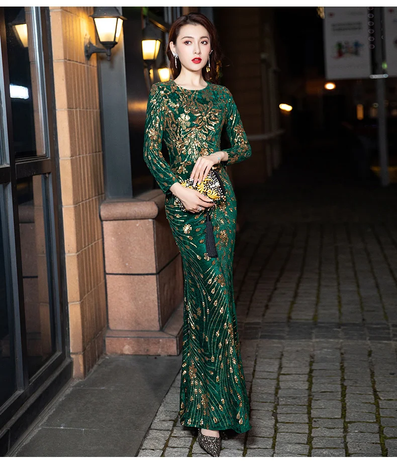 fleepmart Prom Dresses With Long Sleeves Modest O-Neck Floor-Length Luxury Appliques Sequined Women Evening Gowns