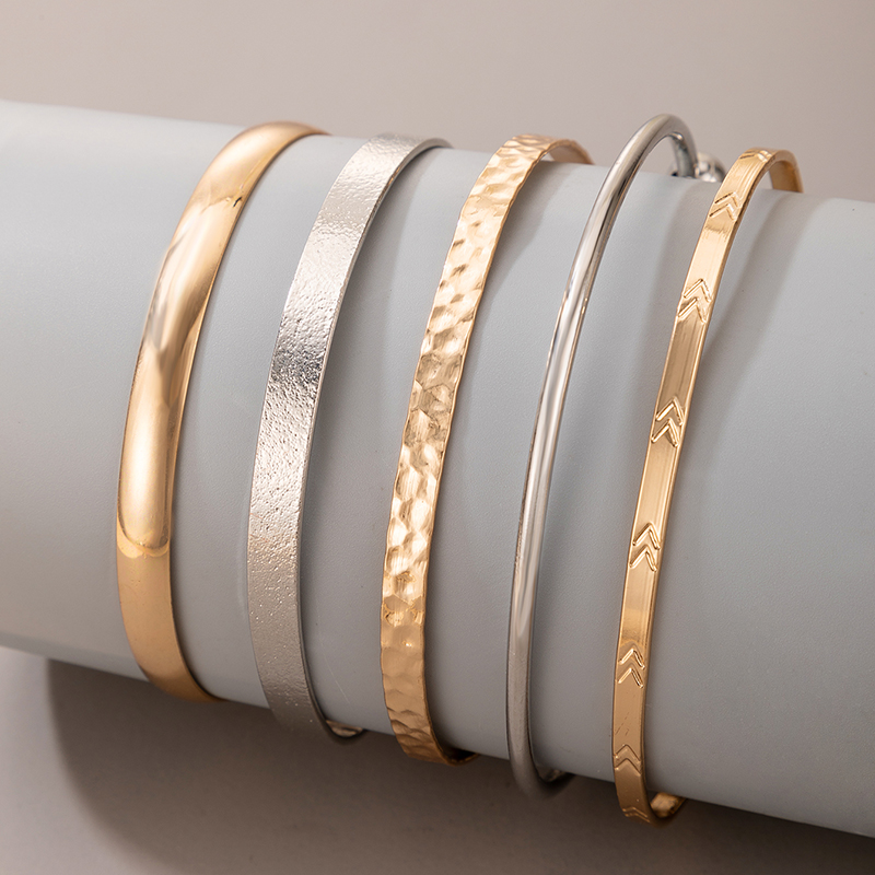 Fleepmart Punk 5pcs/sets Colorful Alloy Metal Bangle for Women New Trendy Open Bracelets Bohemian Jewelry Gift