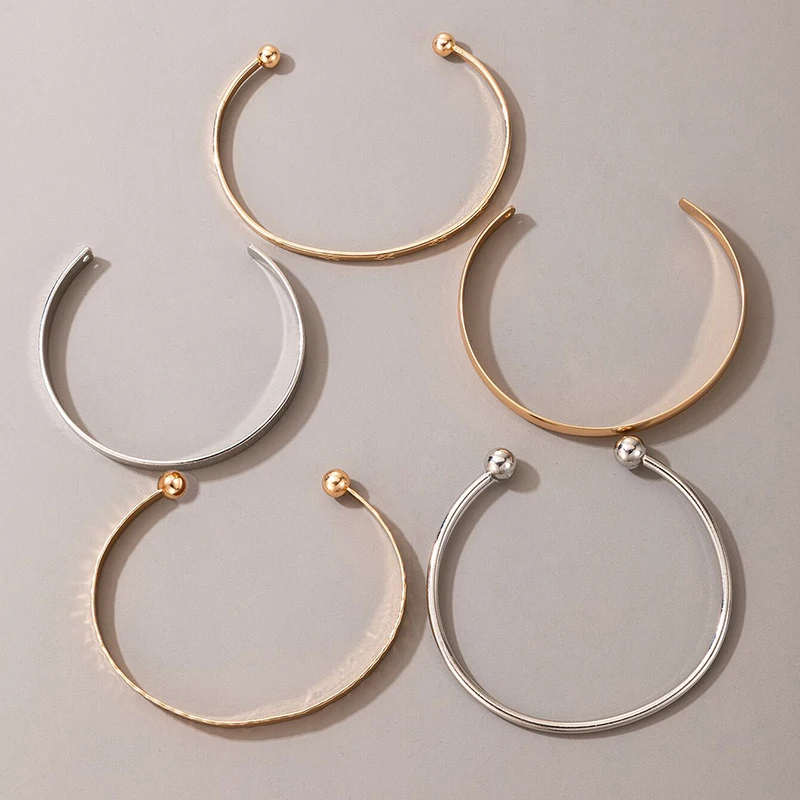 Fleepmart Punk 5pcs/sets Colorful Alloy Metal Bangle for Women New Trendy Open Bracelets Bohemian Jewelry Gift