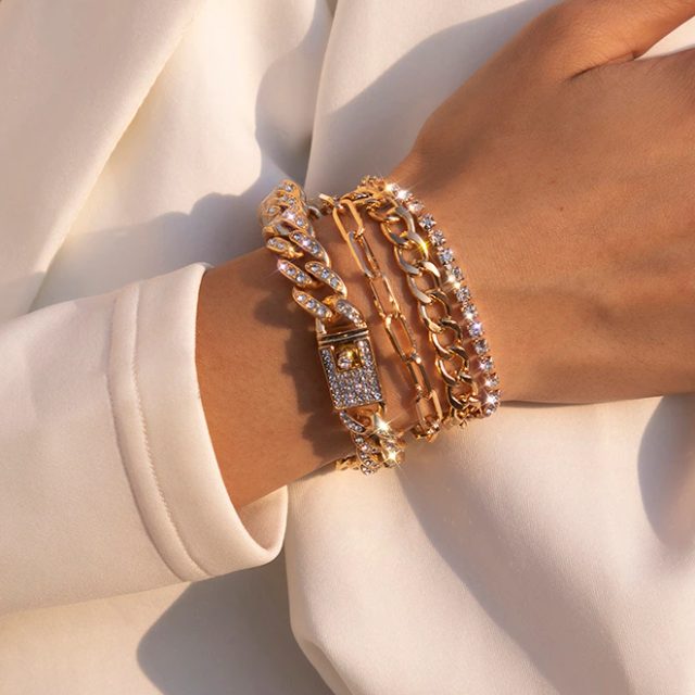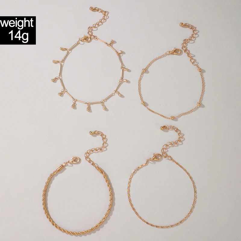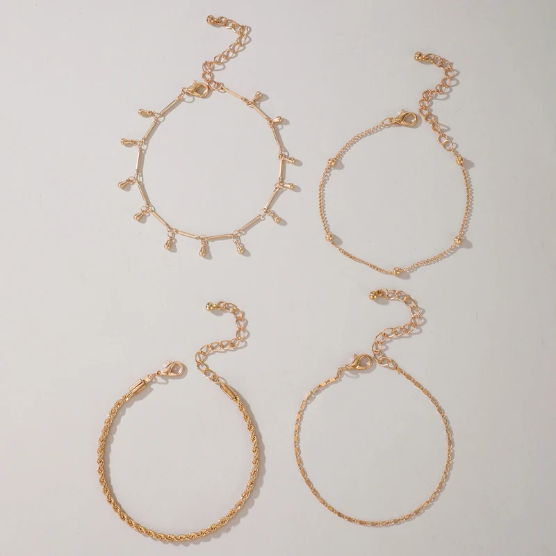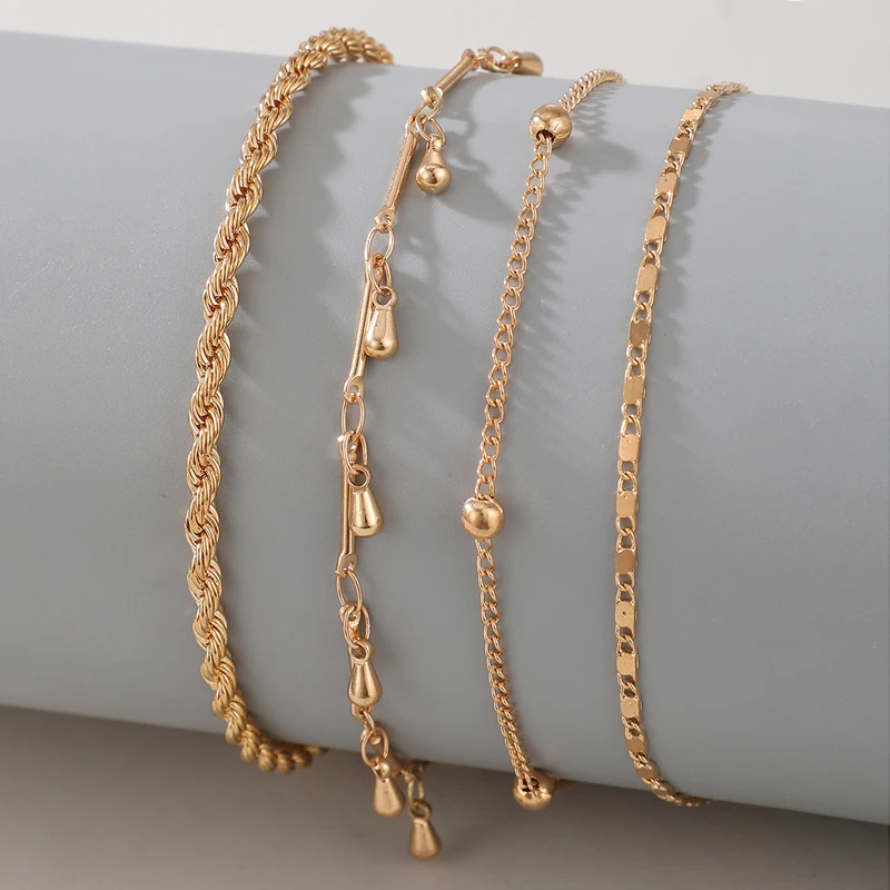 Fleepmart Punk Chain Bracelets for Women Charms Tassel Gold Alloy Metal Bohemian Jewelry 4pcs/sets Accessories браслет