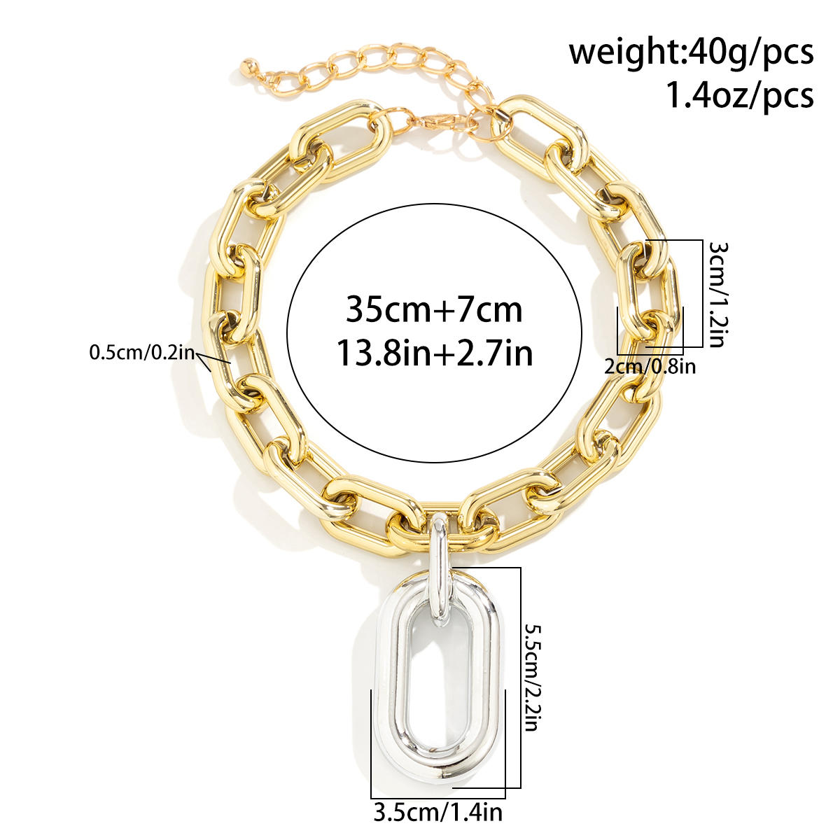 Fleepmart Punk Exaggerated Thick Metal Chain Short Necklace Gothic Big Oval Metal Pendant Choker Women’s Statement Jewelry Gift
