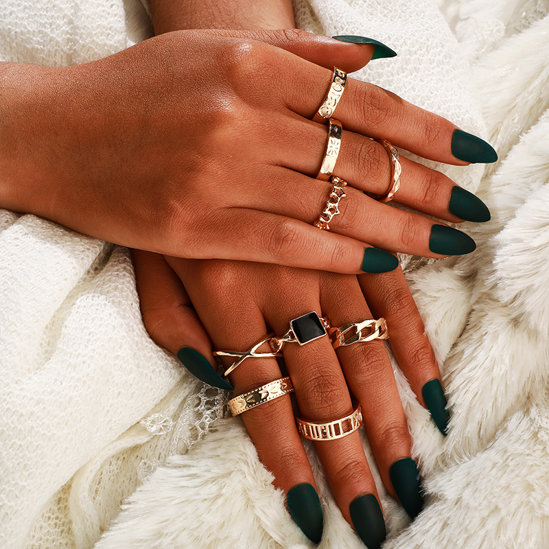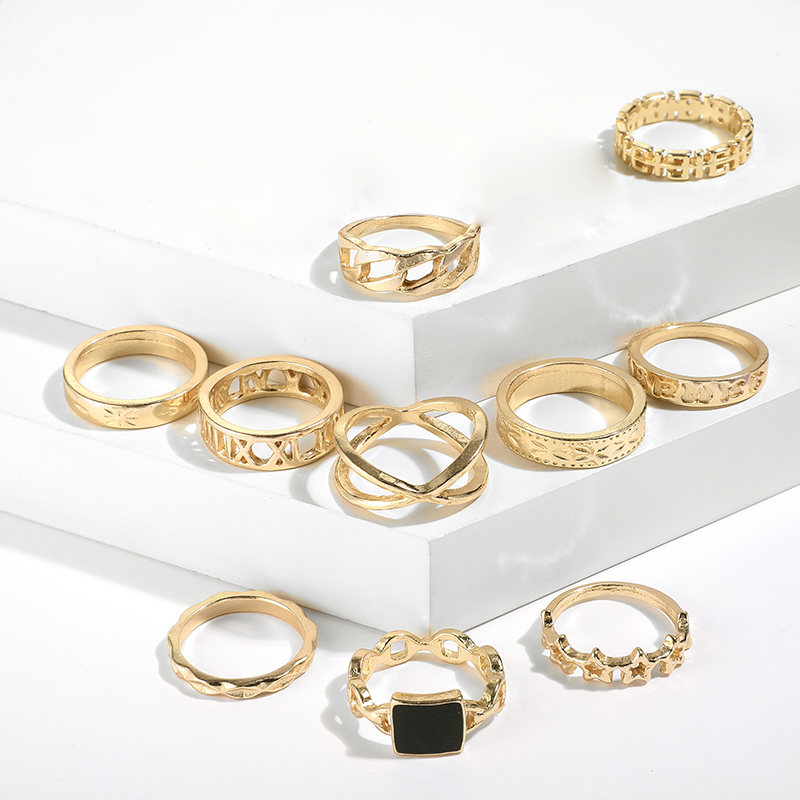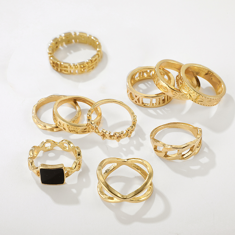 Fleepmart Punk Gold Chain Star Rings Set Vintage Rings for Women Bohemian Geometric Round Hollow Knuckle Ring Girl Jewelry