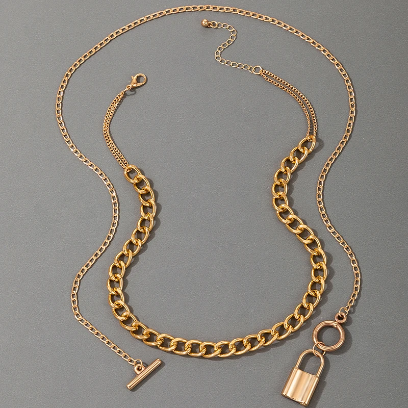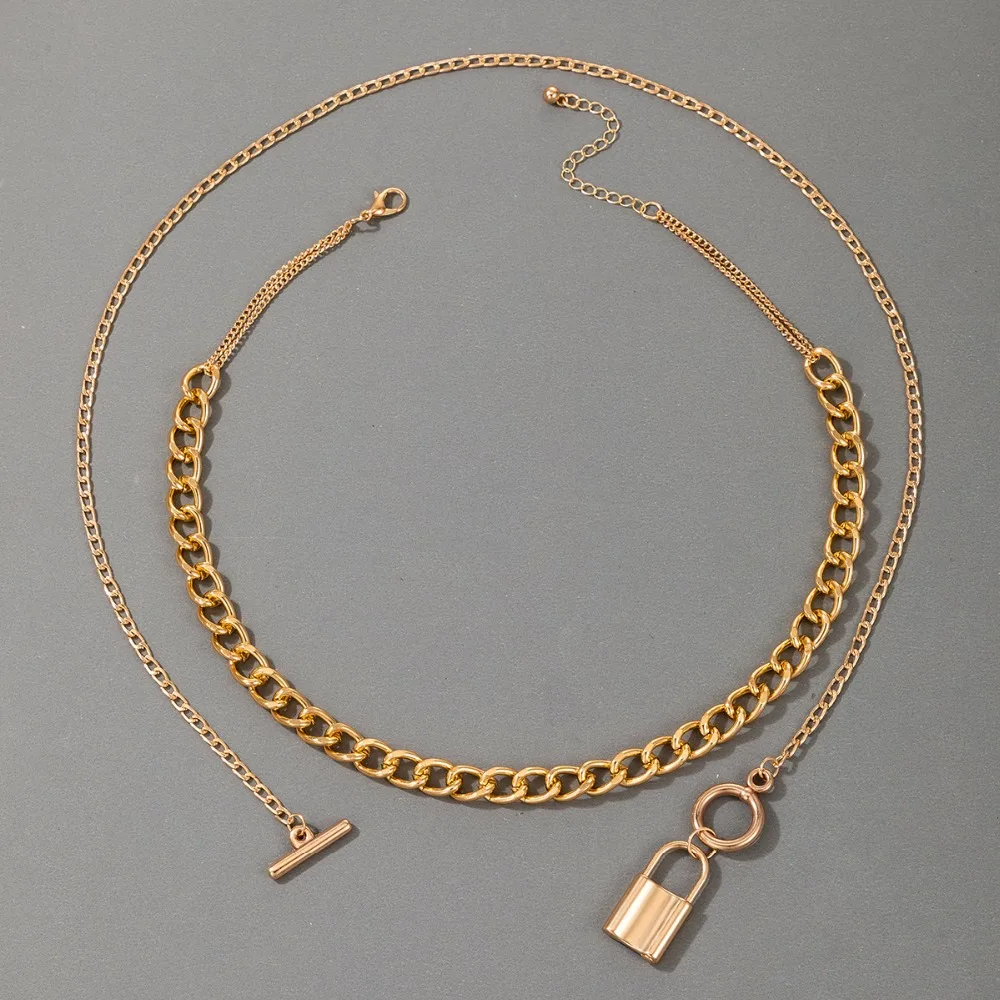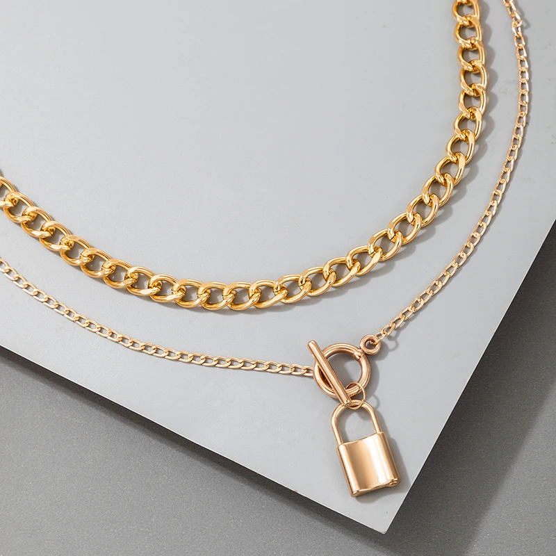 Fleepmart Punk Gold Lock Pendant Necklace for Women Cuban Multilayered Chunky Thick Chain Choker Necklaces Gothtic Jewelry