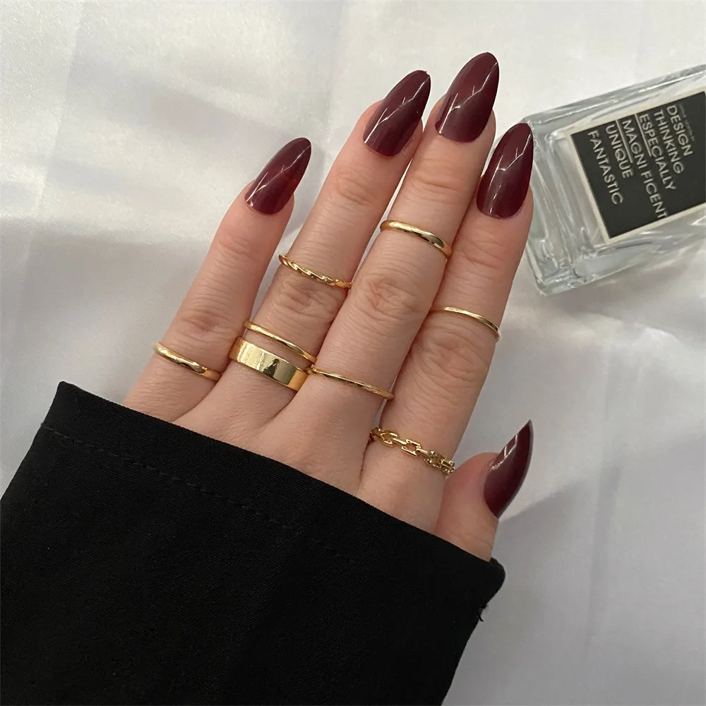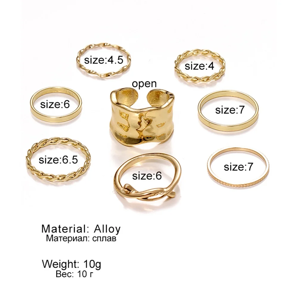 Кольца металлические, за исключением пары колец, на среднем и безымянном, похоже на пластик. Некоторые кольца можно регулировать