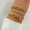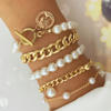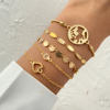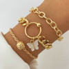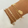 Fleepmart Punk Golden Metal Thick Chain Bracelets for Women Men Pentagram Heart Beads Pendant Charm Bracelet Set Fashion Jewelry