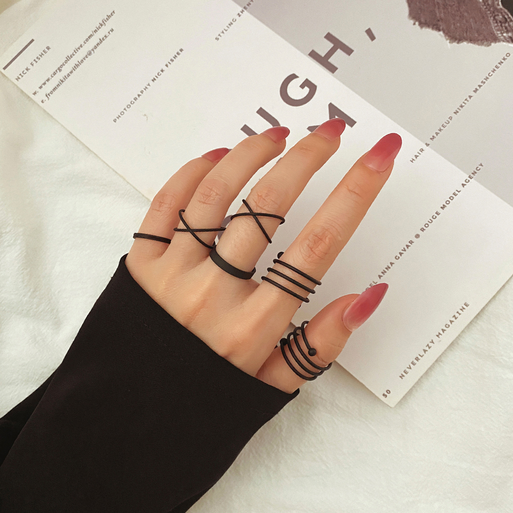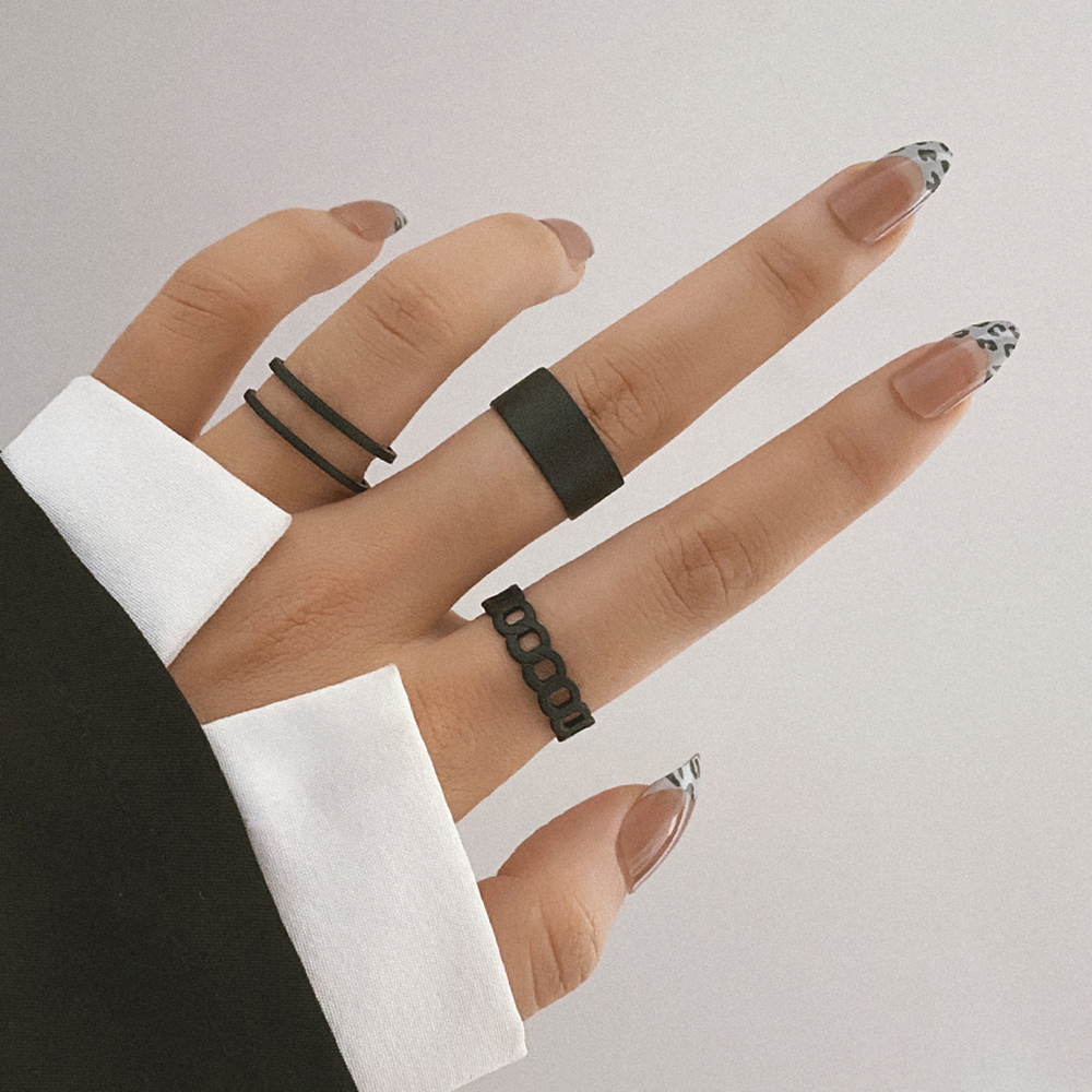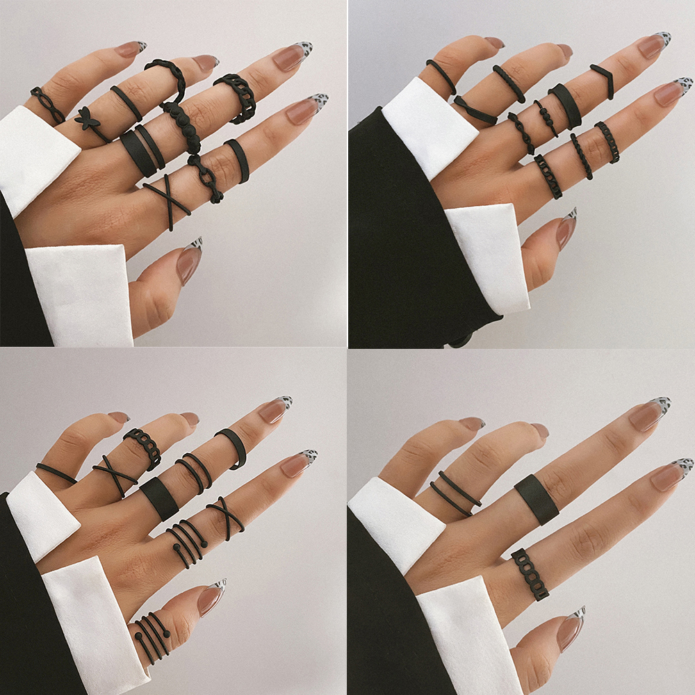 Fleepmart Punk Gothic Black Finger Knuckle Ring Set For Women Vintage Minimalist Geometric Chain Wide Ring Fashion Jewelry Gift