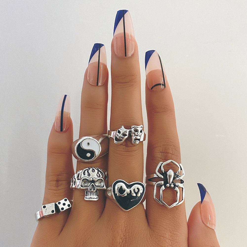 Fleepmart Punk Gothic Butterfly Snake Chain Ring Set for Women Black Dice Vintage Silver Plated Retro Charm Finger Jewelry