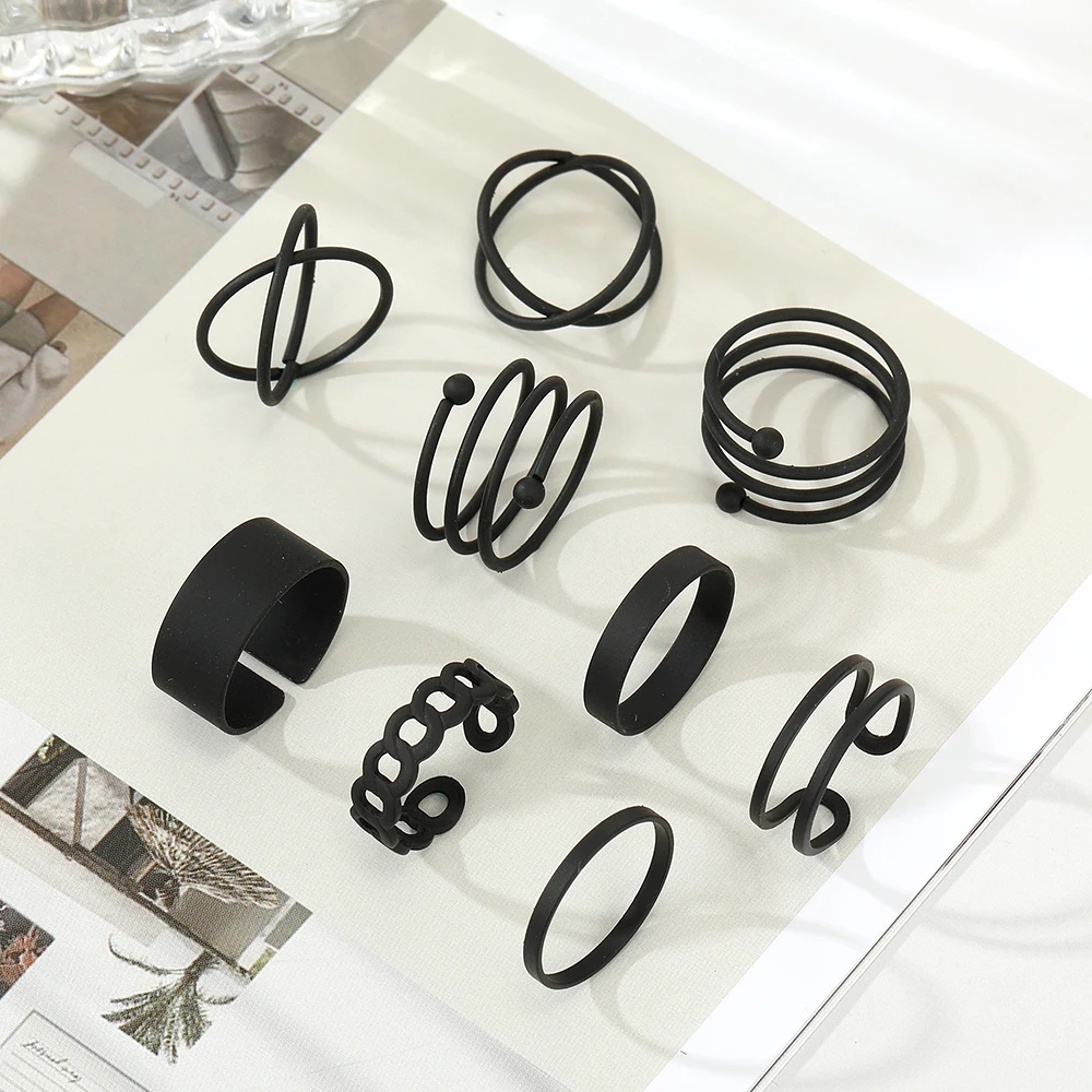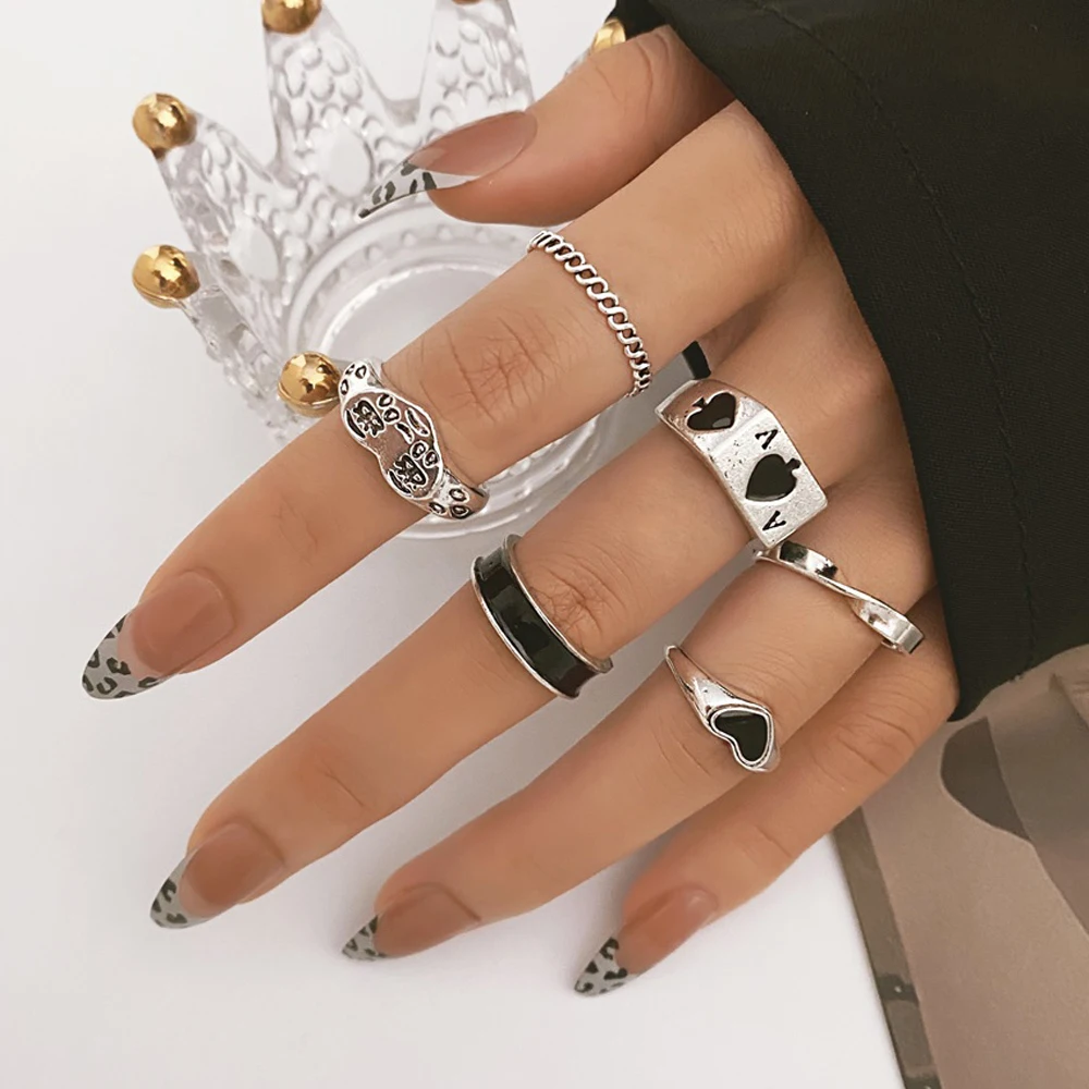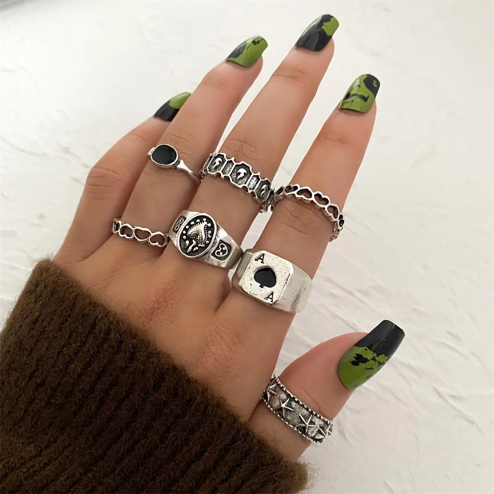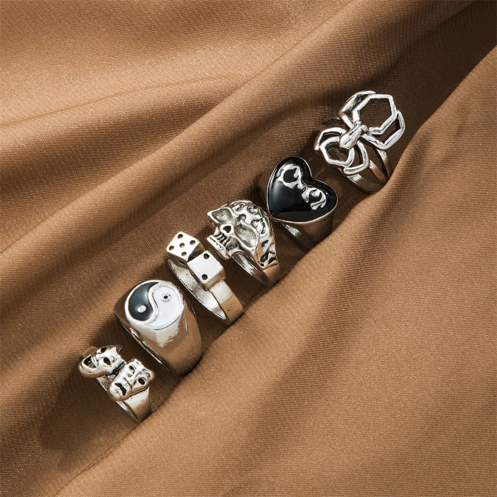Fleepmart Punk Gothic Butterfly Snake Chain Ring Set for Women Black Dice Vintage Silver Plated Retro Charm Finger Jewelry