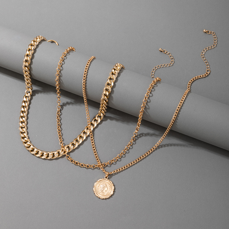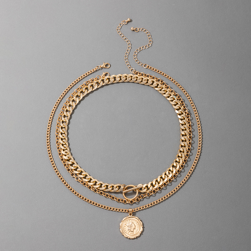 Fleepmart Punk Heavy Metal Coin Pendant Neckalce for Women Charms Multi-layer Geoemtry Alloy Adjustable Jewelry Collar