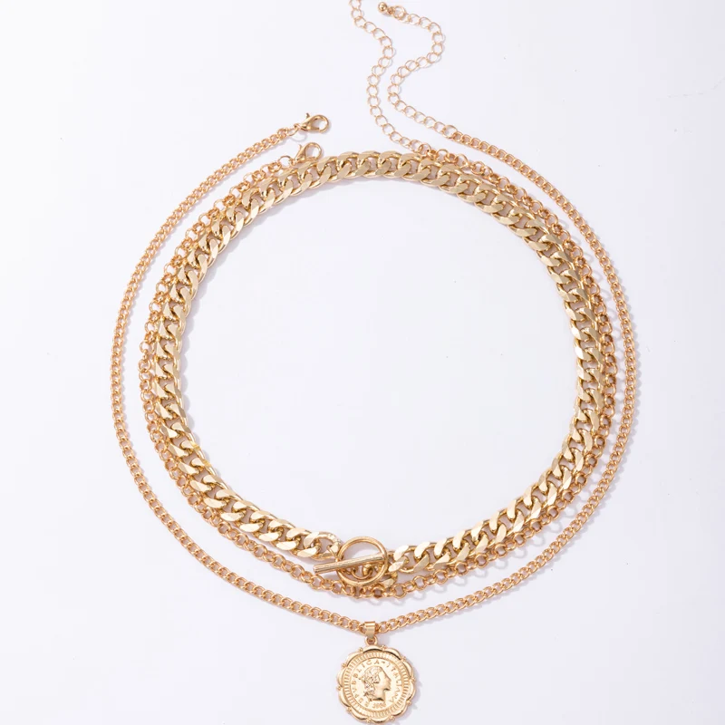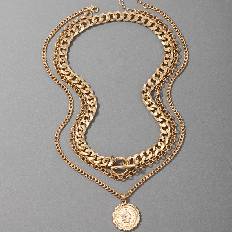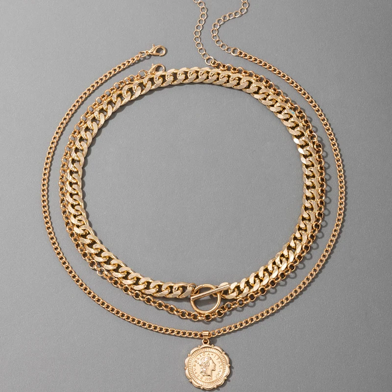 Fleepmart Punk Heavy Metal Coin Pendant Neckalce for Women Charms Multi-layer Geoemtry Alloy Adjustable Jewelry Collar