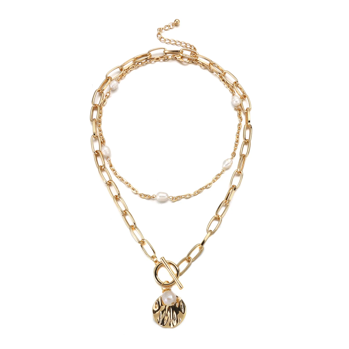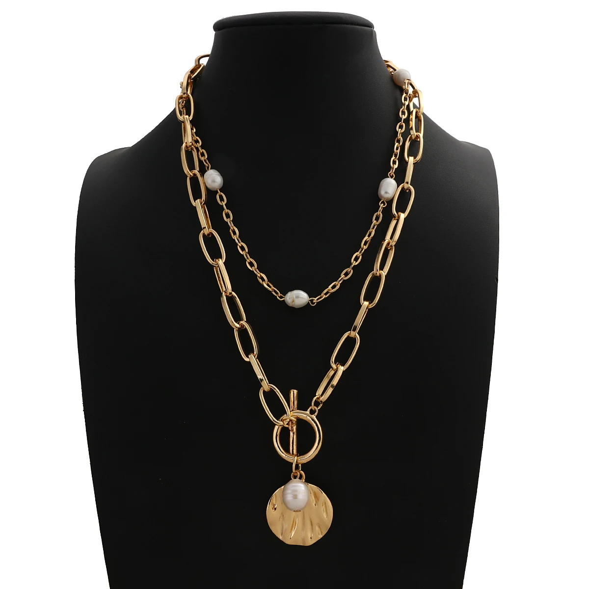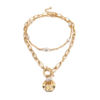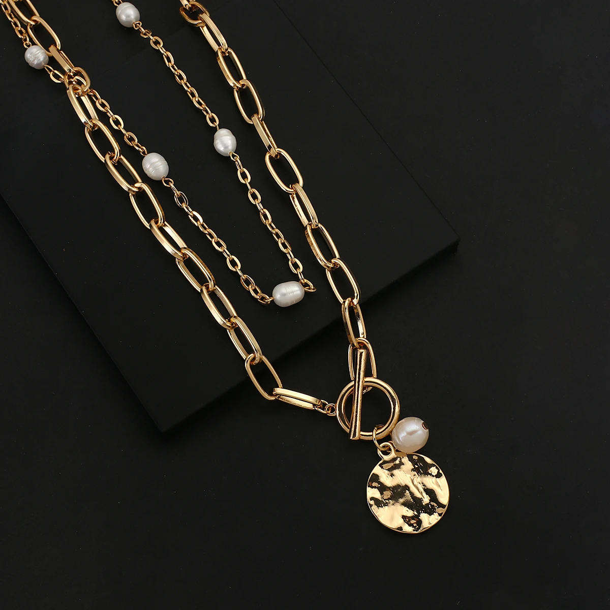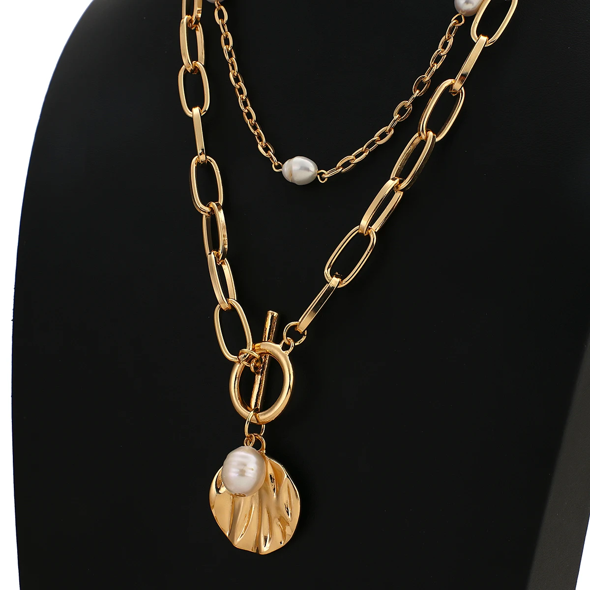 fleepmart Punk Hip Hop Shell Pendant Necklace Retro Chunky Women Men Link Chain Pearl Lock Necklace Collar Fashion Female Jewelry