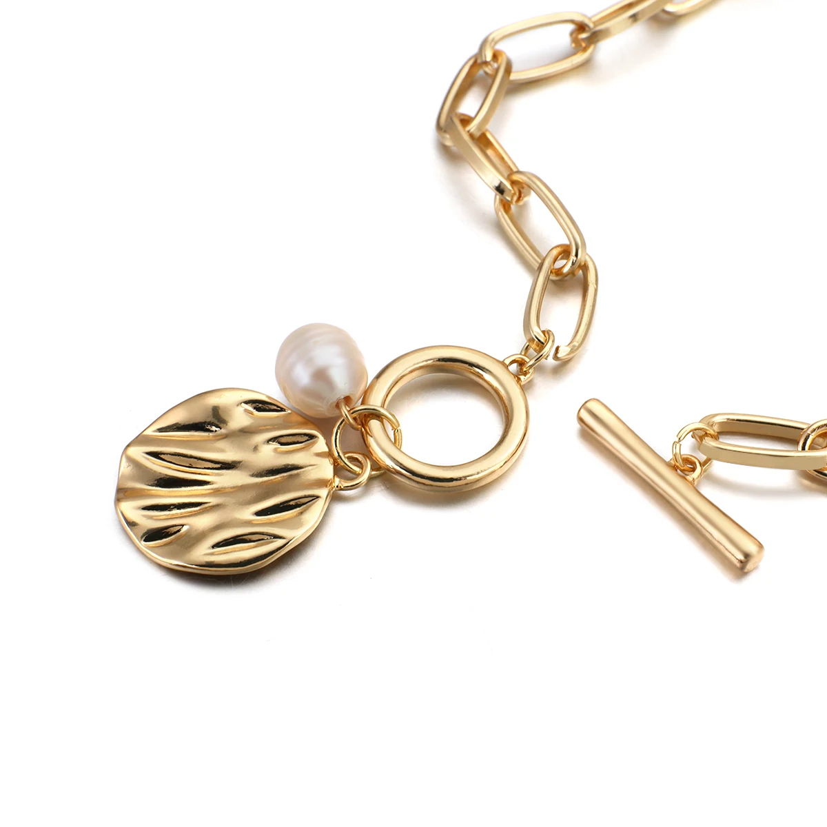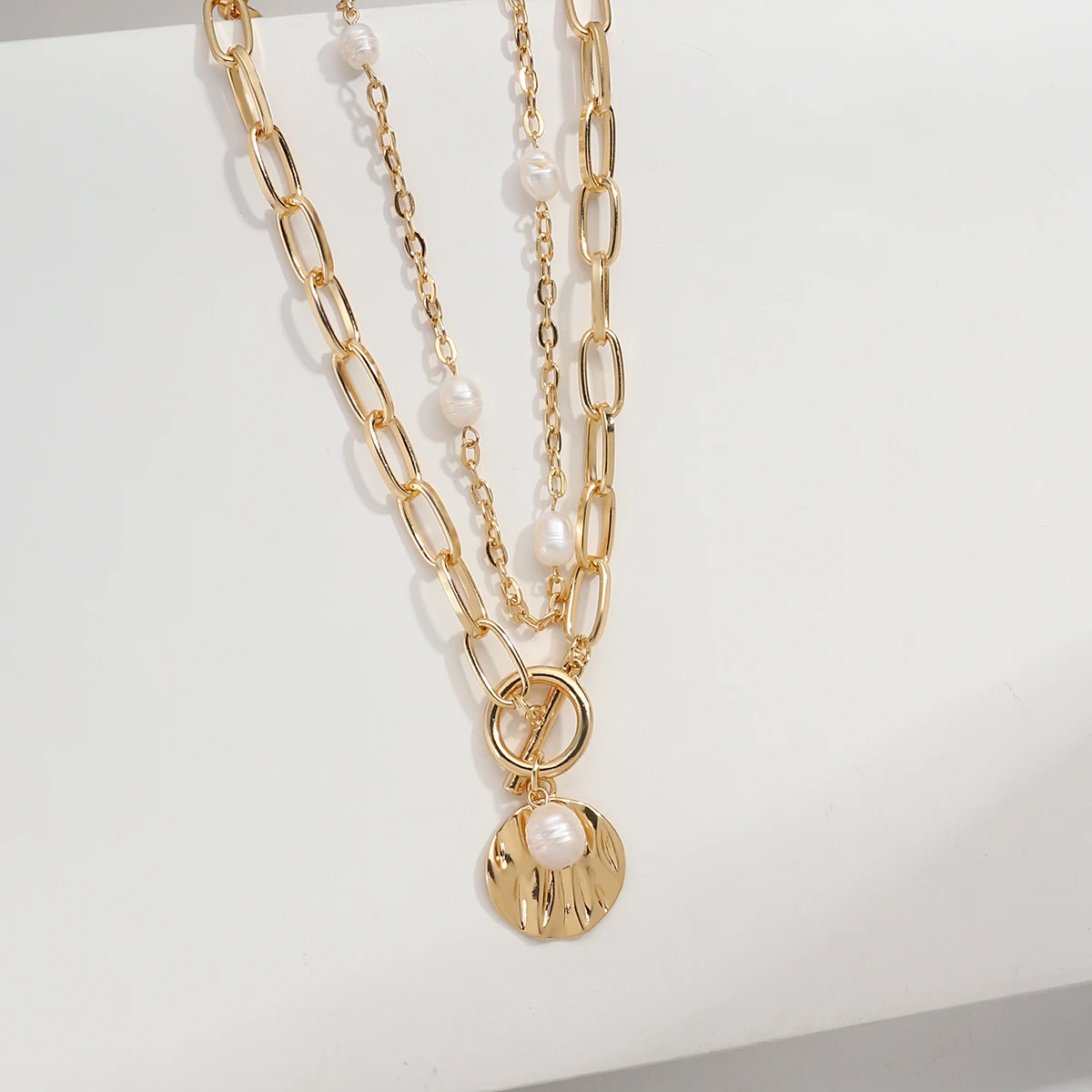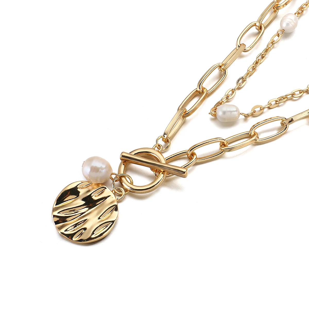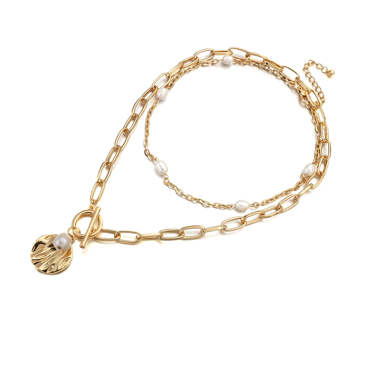 fleepmart Punk Hip Hop Shell Pendant Necklace Retro Chunky Women Men Link Chain Pearl Lock Necklace Collar Fashion Female Jewelry