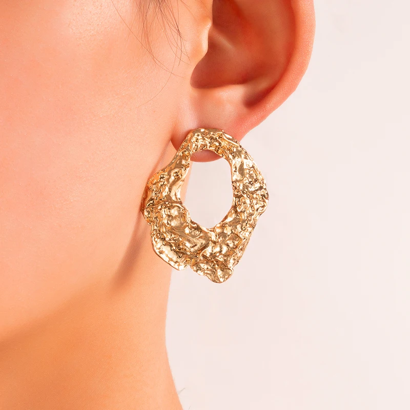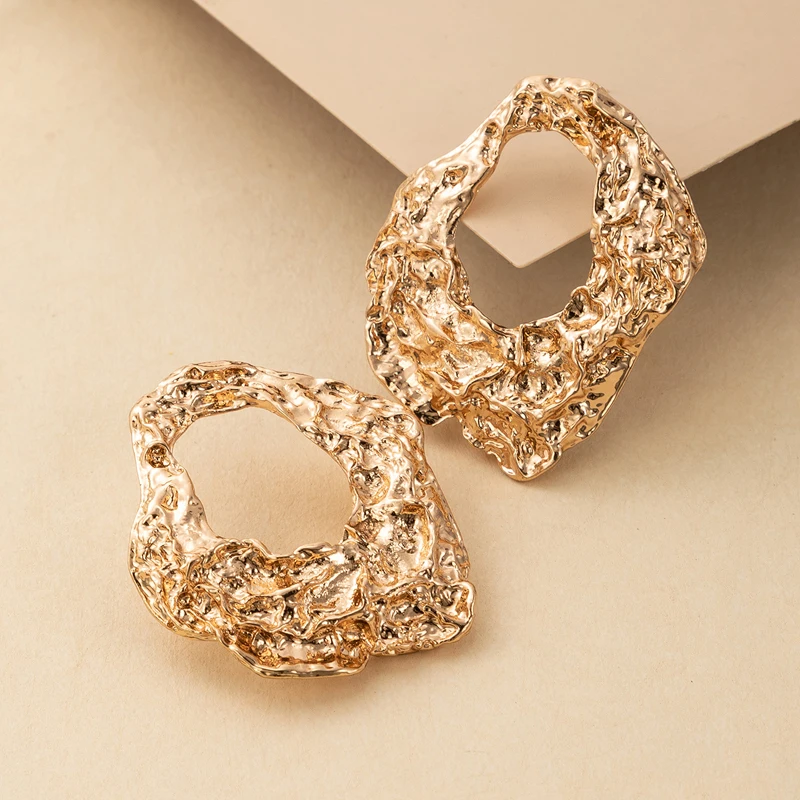 Fleepmart Punk Irregular Geometry Stud Earrings for Women Charms Hollow Gold Alloy Metal Party Earring Jewelry pendientes