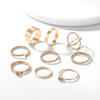 Fleepmart Punk Metal Geometric Chain Finger Joint Ring Set for Women Retro Minimalist Pearl Irregular Finger Thin Rings Party Gift