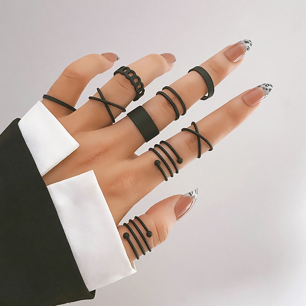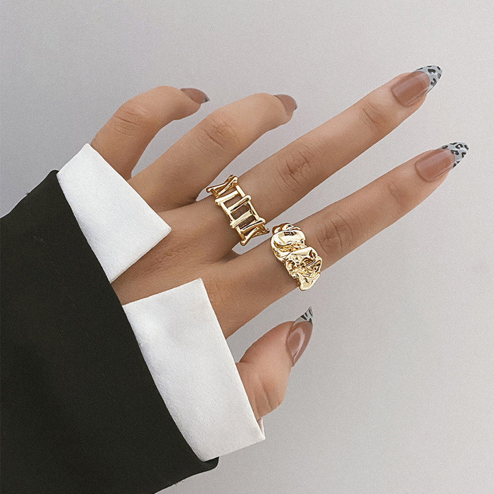 Fleepmart Punk Metal Geometric Ring Set for Women Vintage Minimalist Metal Wide Knuckle Ring 2022 Trend Finger Jewelry Gifts