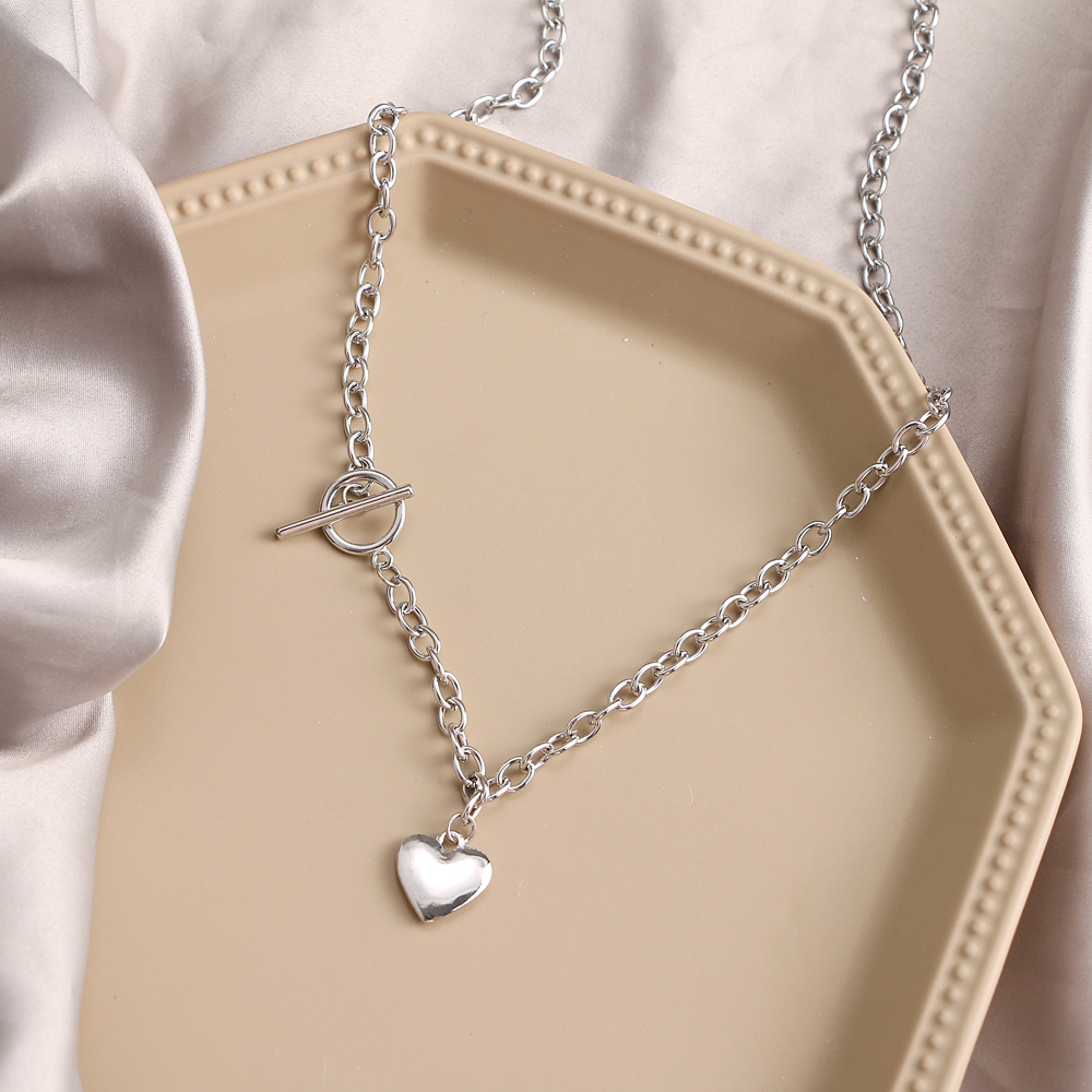 Fleepmart Punk Metal Heart OT Buckle Chain Necklace Women’s Retro Silver Color Thick Chain Collar Pendant Necklace Bohemian Jewelry
