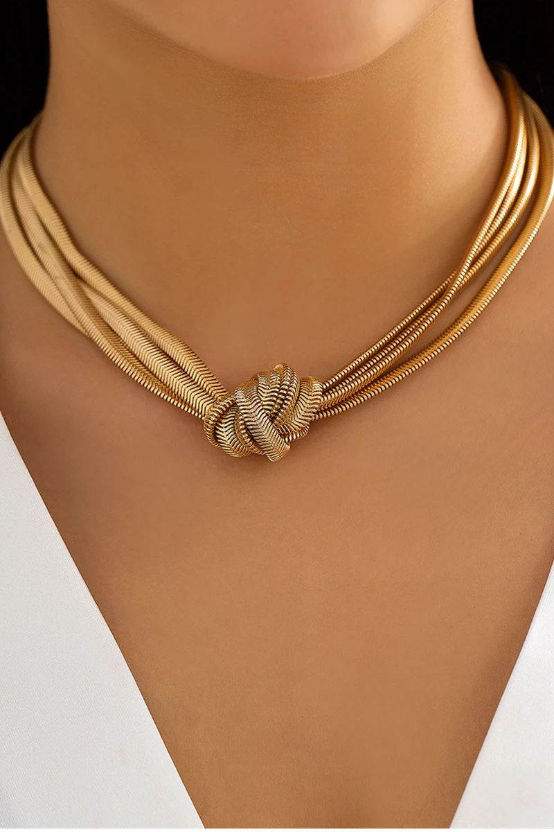 Fleepmart Punk Multi-layer Flat Snake Chain Short Clavicle Necklace Creative Metal Chain Knot Necklace Hip-hop Fashion Jewelry