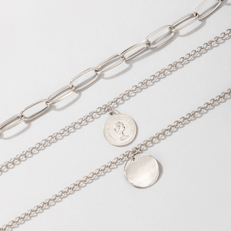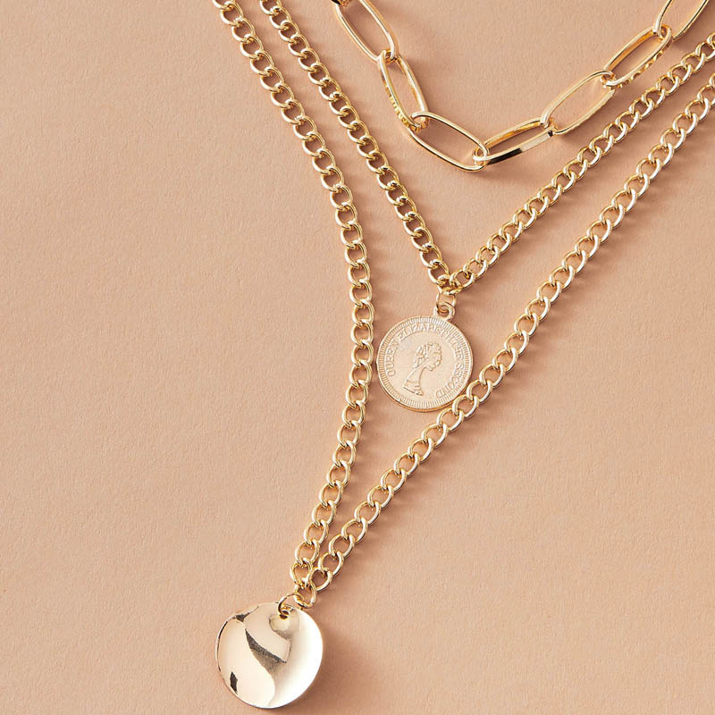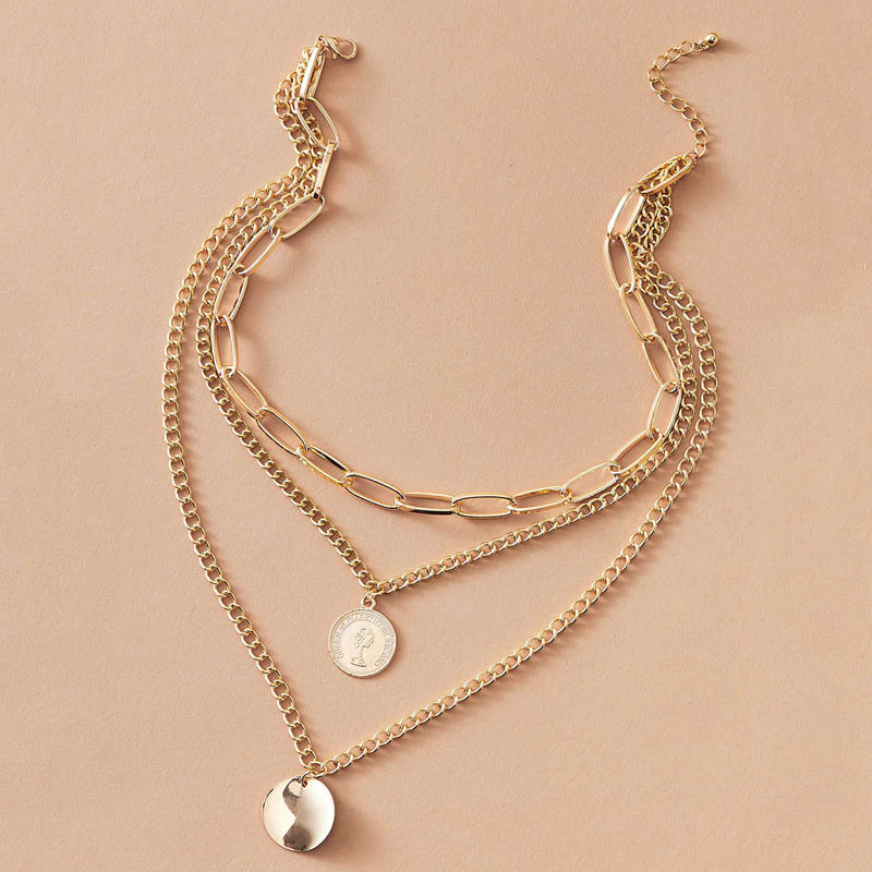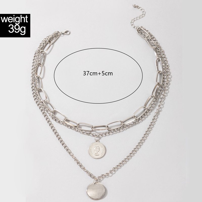Fleepmart Punk Portrait Pendant Necklace Thick Chain Choker Multilayer Wafer Geometry Alloy Metal Jewelry for Women Gift Collar