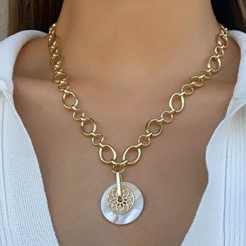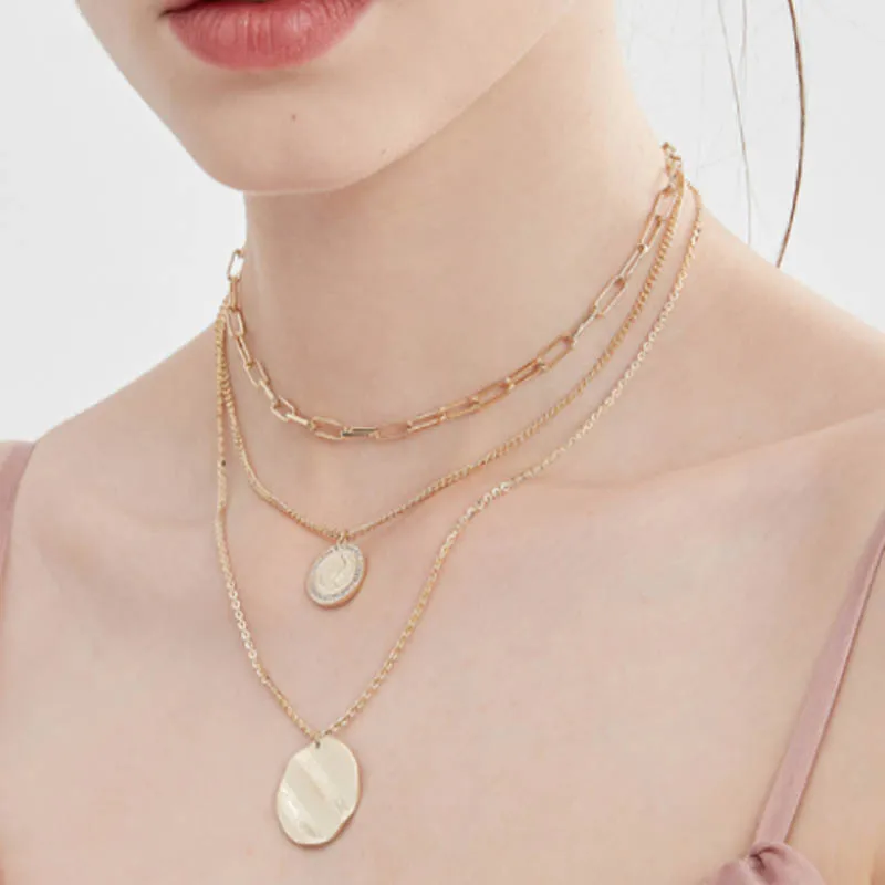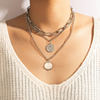 Fleepmart Punk Portrait Pendant Necklace Thick Chain Choker Multilayer Wafer Geometry Alloy Metal Jewelry for Women Gift Collar