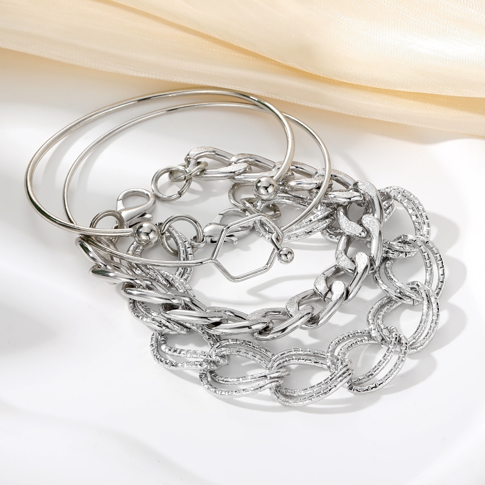 Fleepmart PUNK Silver Color Cuban Chain Bracelet for Women Men Double Layer Chains Bracelets Set Hippop Fashion Jewelry Gifts