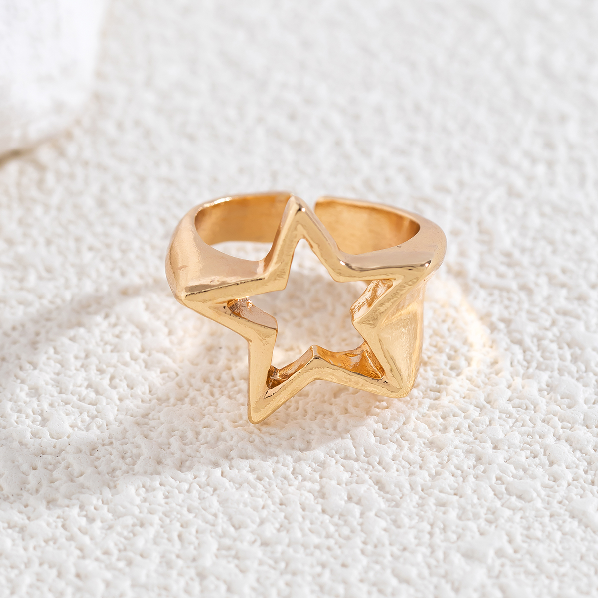 Fleepmart Punk Simple Geometry Hollow Star Ring Fashion Opening Adjustable Wide Edge Ring Women’s Aesthetic Statement Jewelry