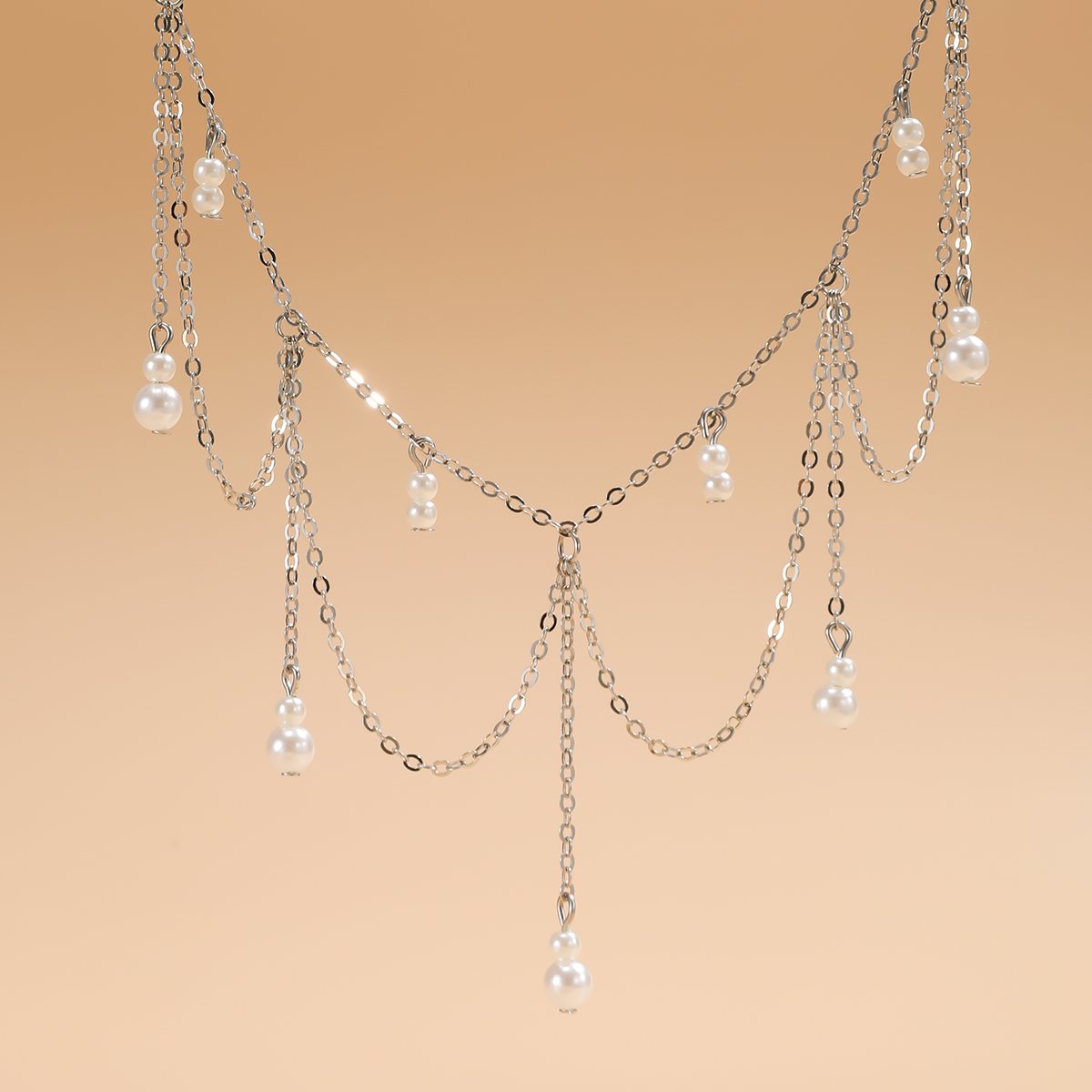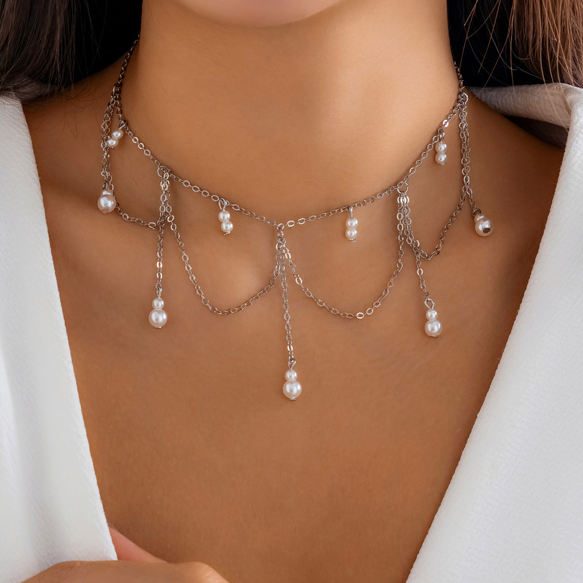 Fleepmart Punk Simple Mesh Metal Tassel Pendant Necklace Gothic Gourd Shaped Imitation Pearl Necklace Women’s Party Neck Jewelry
