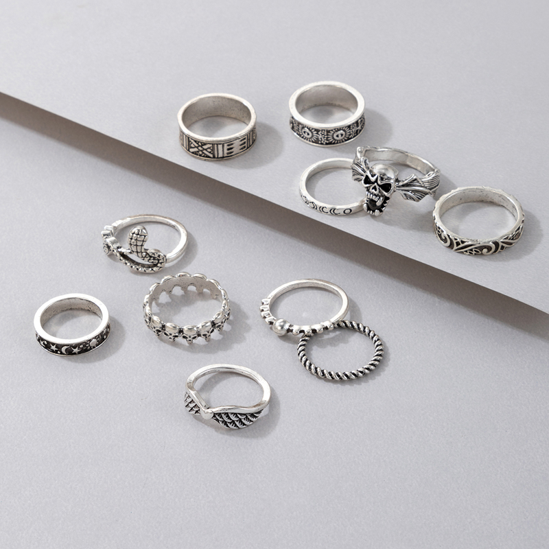 Fleepmart Punk Skull Snake Finger Rings Set for Women Men Fashion Personality Geometric Alloy Metal Party Jewelry Anillos