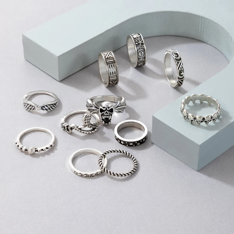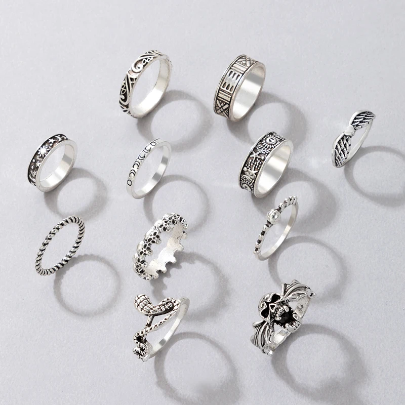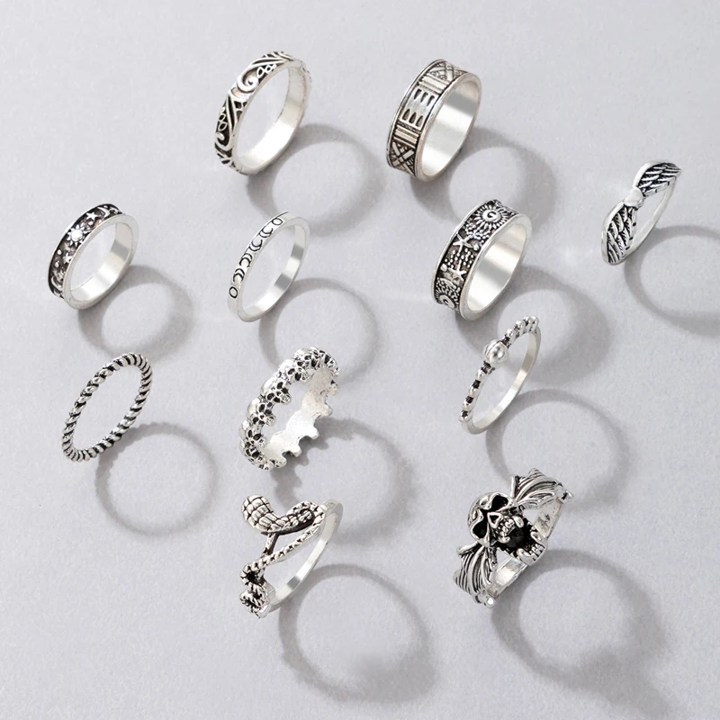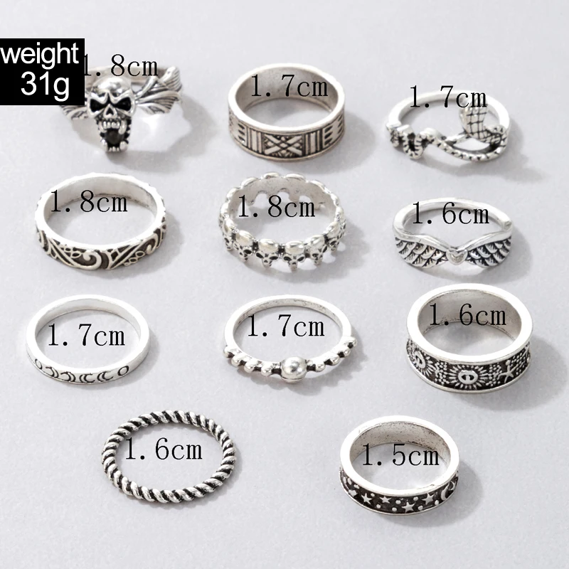 Fleepmart Punk Skull Snake Finger Rings Set for Women Men Fashion Personality Geometric Alloy Metal Party Jewelry Anillos