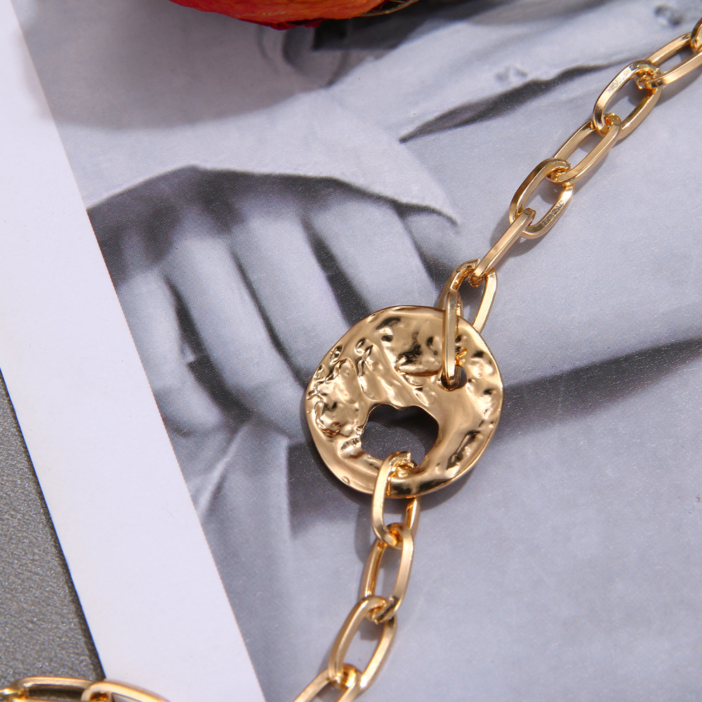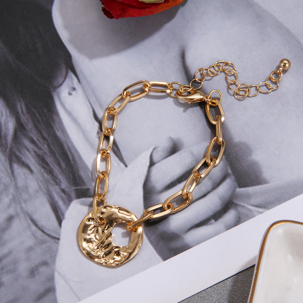 Fleepmart Punk Street Hollow Coin Thick Chain Bracelet Bohemian Geometric Gold Metal Gothic Jewelry Fashion Trend Couple Bracelet