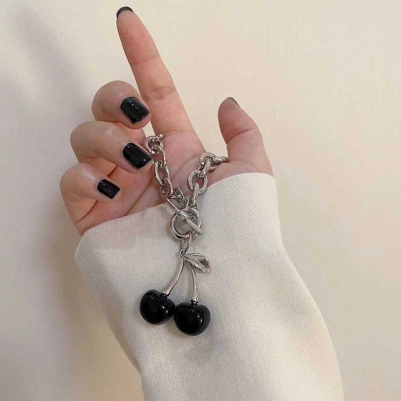 Fleepmart Punk Style Red Black Cherry Pendant Necklace Women Gothic Metal Geometric Choker Necklace Girls Birthday Party Jewelry