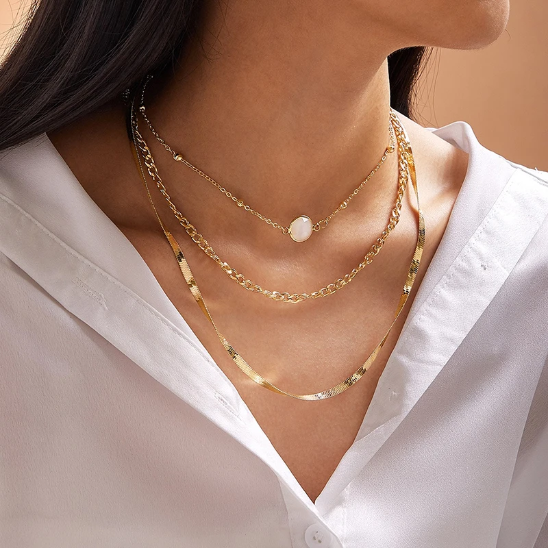Fleepmart Punk Thick Chain Choker Necklace Clear Crystal Stone Multilayer Alloy Metal Adjustable Bohemian Jewelry for Women