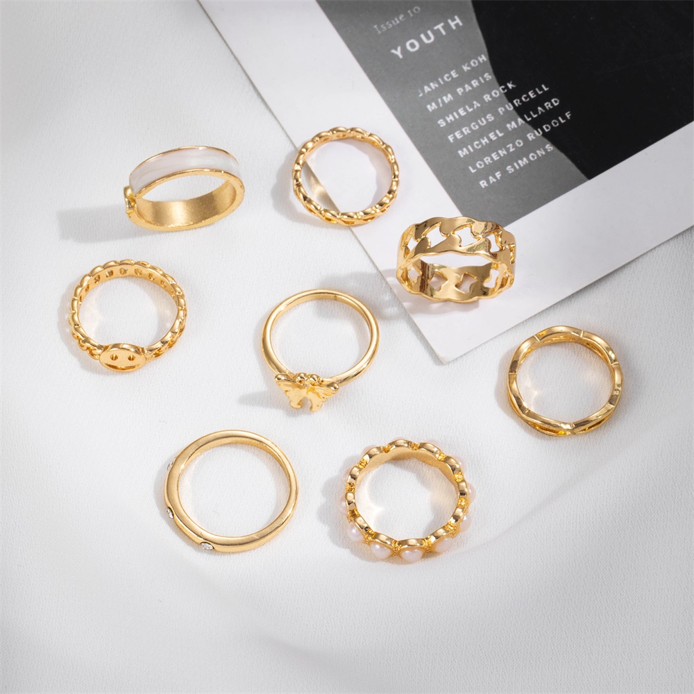 Fleepmart Punk Vintage Gold Wide Chain Rings Set For Women Girls Fashion Irregular Finger Thin Rings Gift 2022 Female Jewelry Party