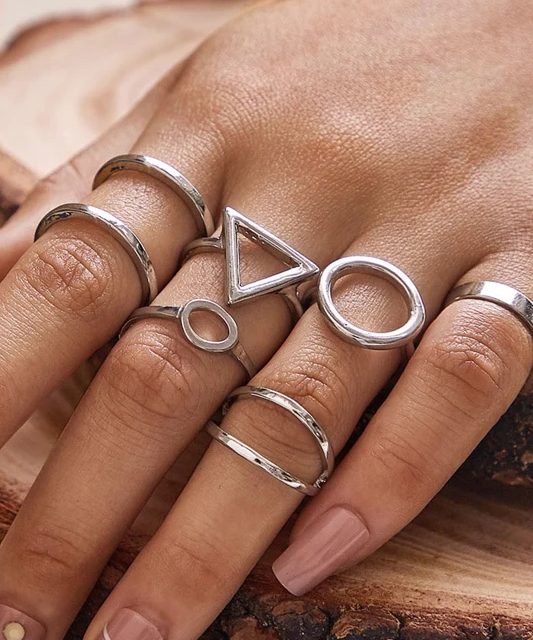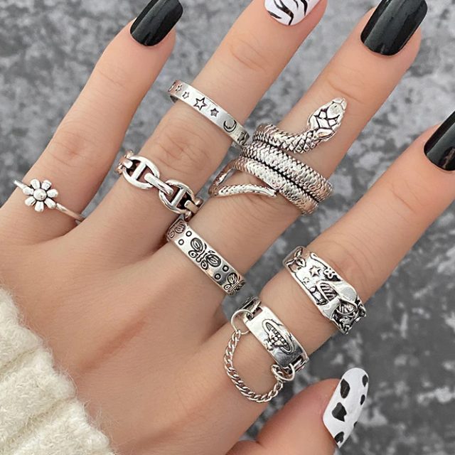 Fleepmart Punk Vintage Gold Wide Chain Rings Set For Women Girls Fashion Irregular Finger Thin Rings Gift 2022 Female Jewelry Party