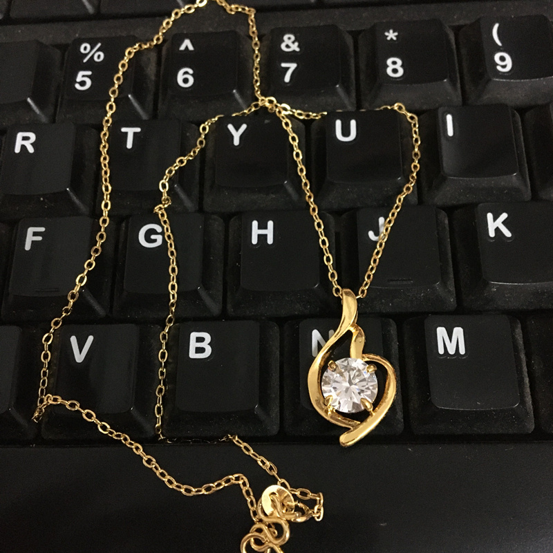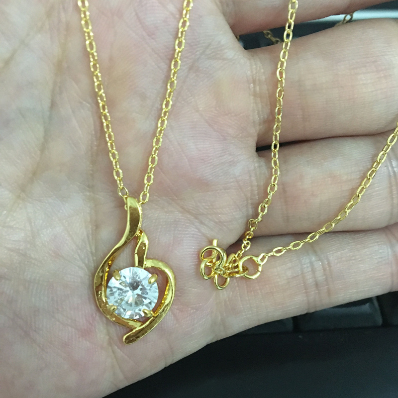 Fleepmart Pure Gold 24K Gold Necklace Electroplating Gold Zircon Crystal Pendant Cross Chain Necklace Ladies Wedding Jewelry