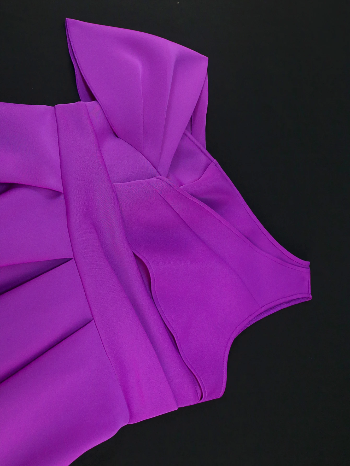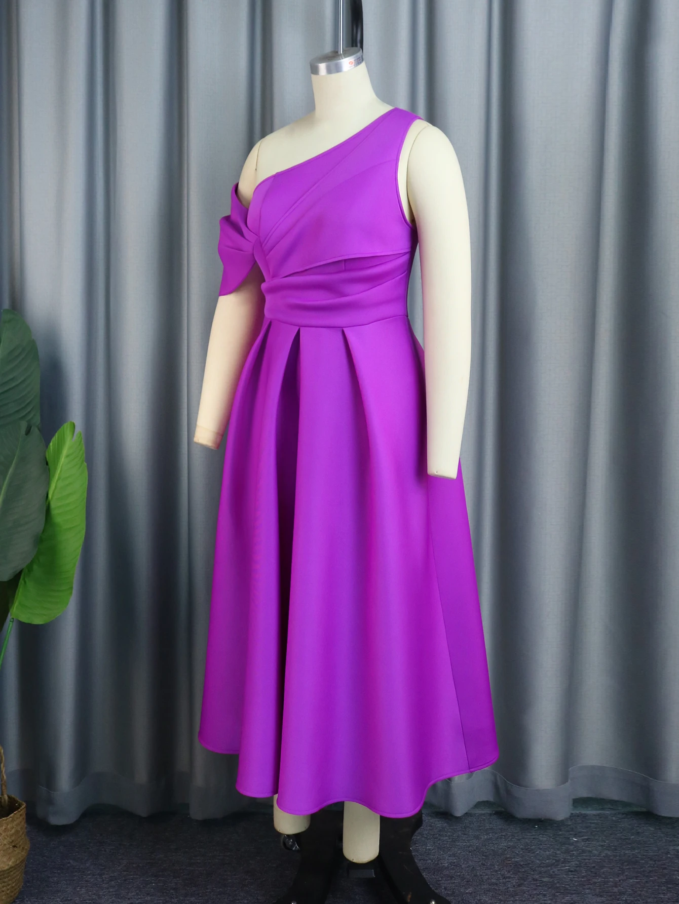 Fleepmart Purple A Line Party Dress For Women Elegant Luxury One Shoulder Ruffles Pleated Robes African Female Birthday Plus Size