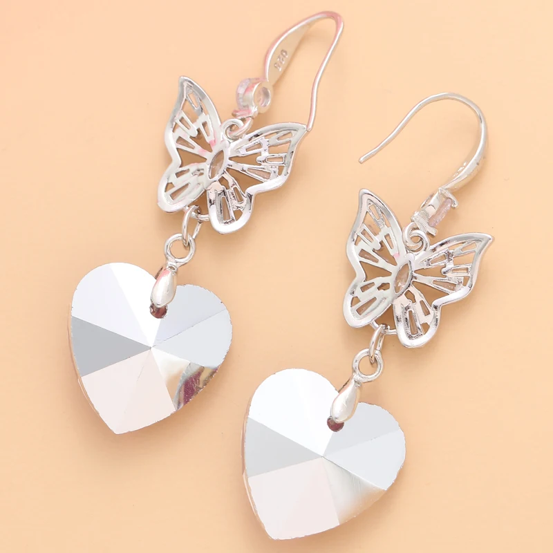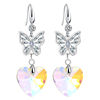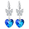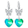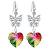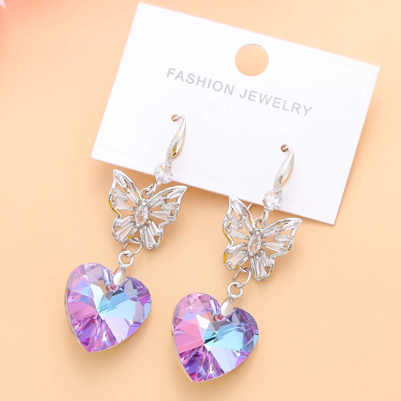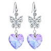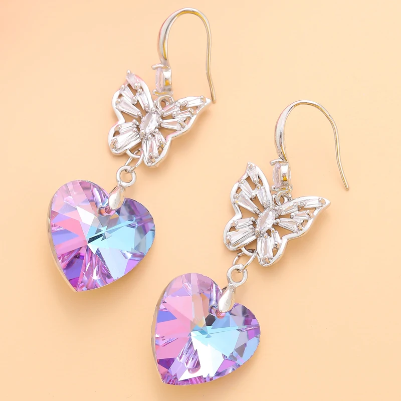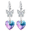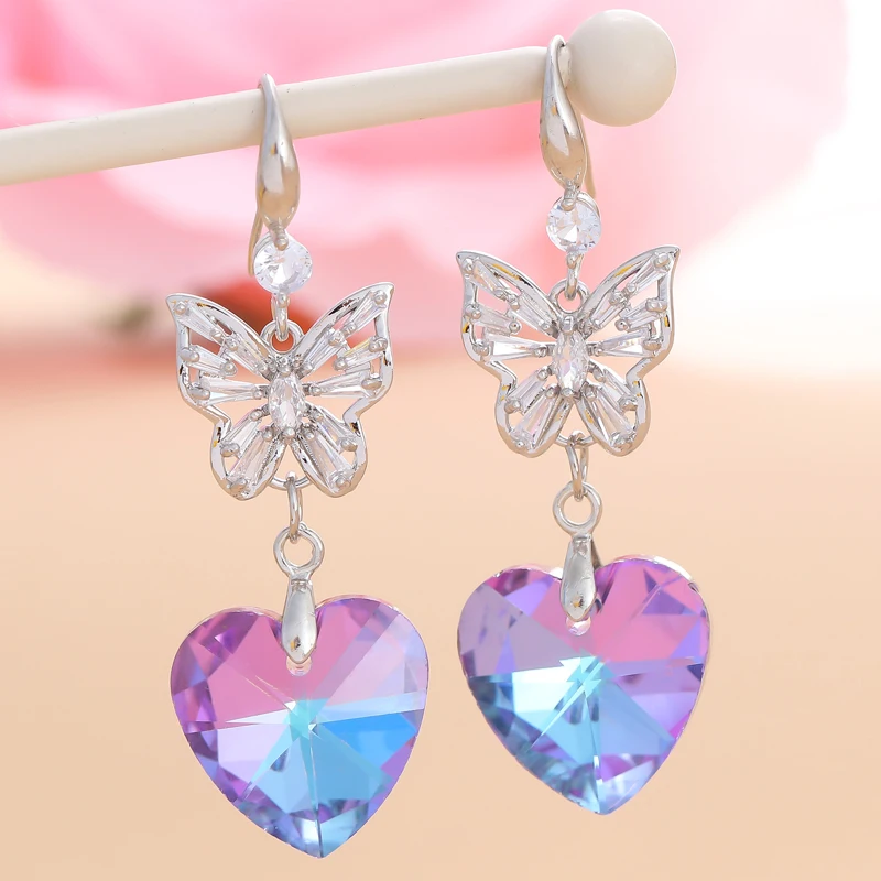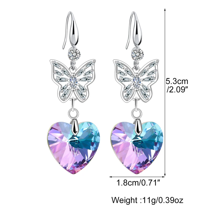 Fleepmart Purple Blue Gradient Color Heart Crystal Earrings For Women French Hook Clasp Silver Plate Butterfly Earrings Party Jewelry