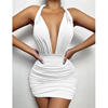 Fleepmart Purple Summer Dress Ruched Deep V Neck Backless Halter Vestido 2 Layer Elastic Mini Bodycon Dresses for Women 2024