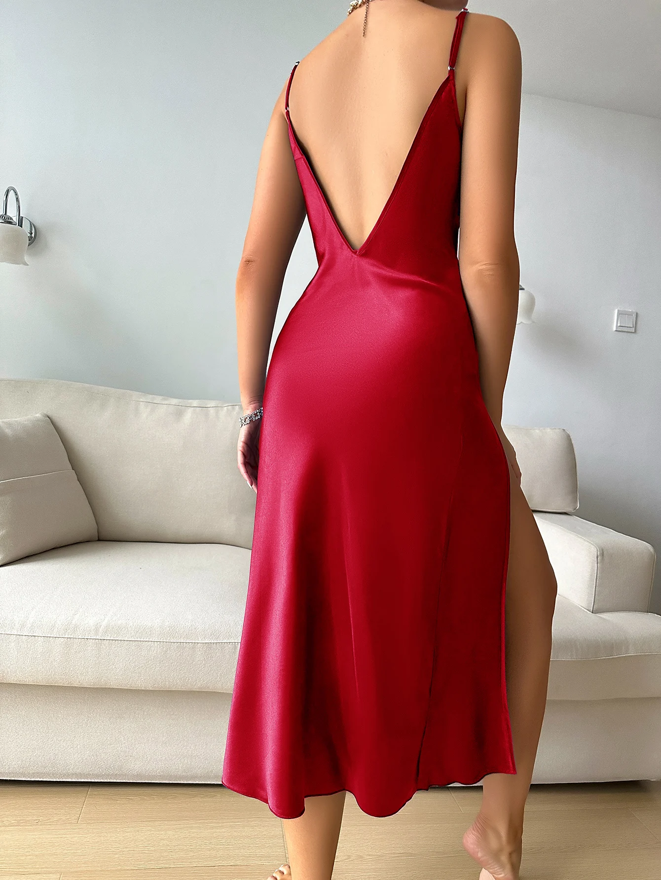 fleepmart Red Lace-up Straps Nightdress Comfort Sexy V-Neck Spaghetti Strap Pajama Dress For Valentine’s Gifts Women’s Sleepwearfleepmart Red Lace-up Straps Nightdress Comfort Sexy V-Neck Spaghetti Strap Pajama Dress For Valentine’s Gifts Women’s Sleepwear