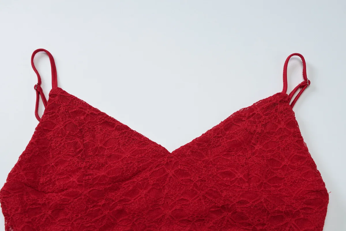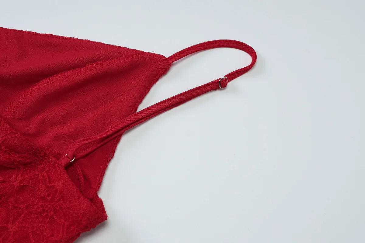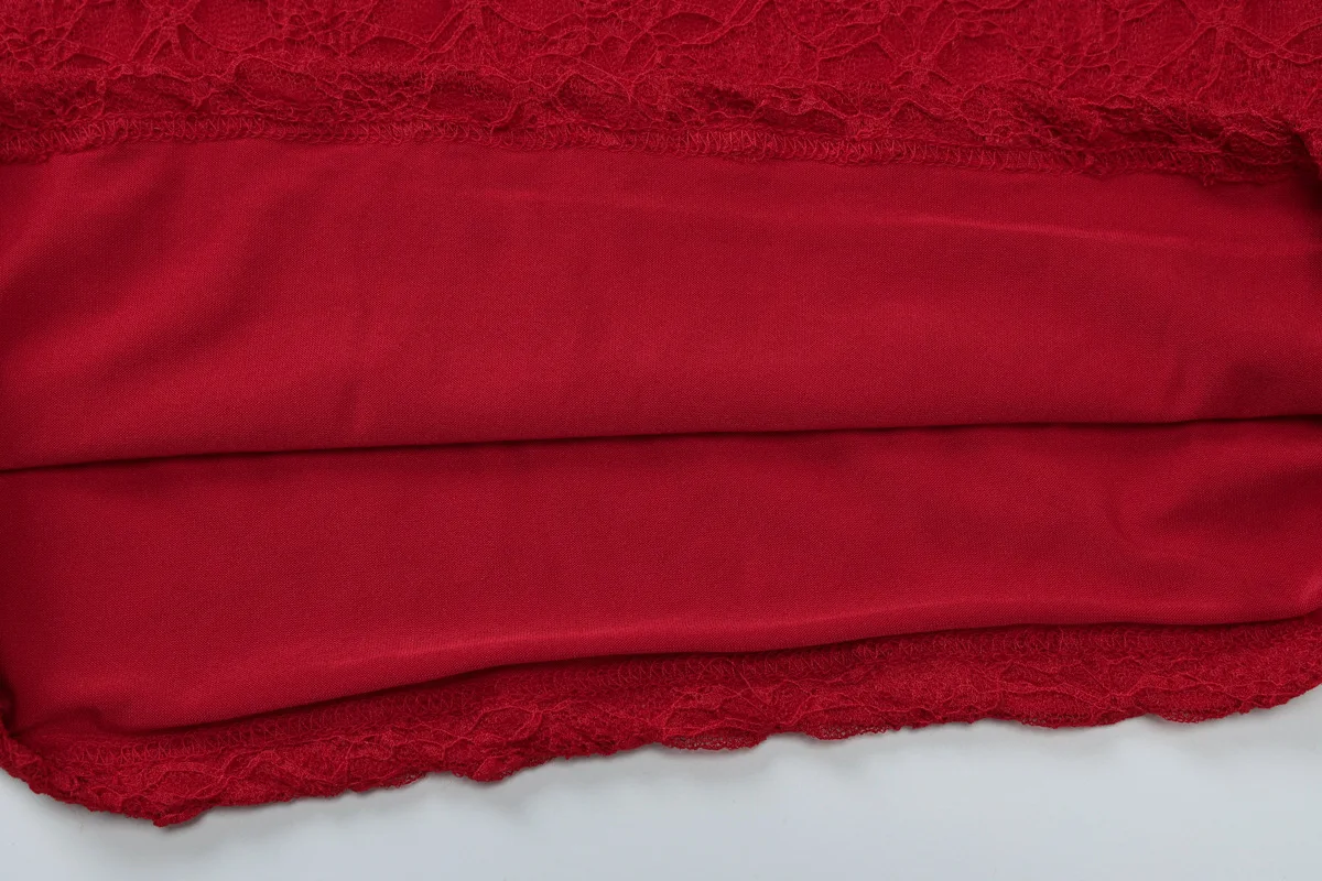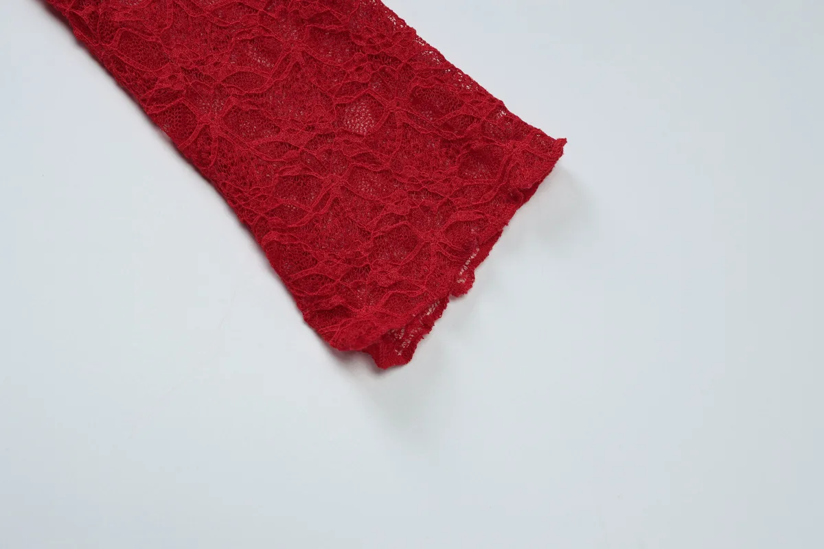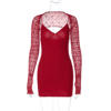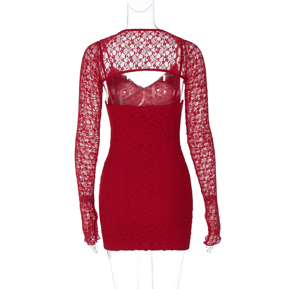 Fleepmart Red Sexy Lace Spice Girl Slim V-neck Long Sleeve Mini Women Spring New Hip Party Dress