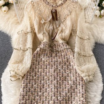Fleepmart Retro Embroidery Flower Mermaid Dress Female Elegant Slim Ruffle Party Dresses Fashion Streetwear Autumn Midi Dress