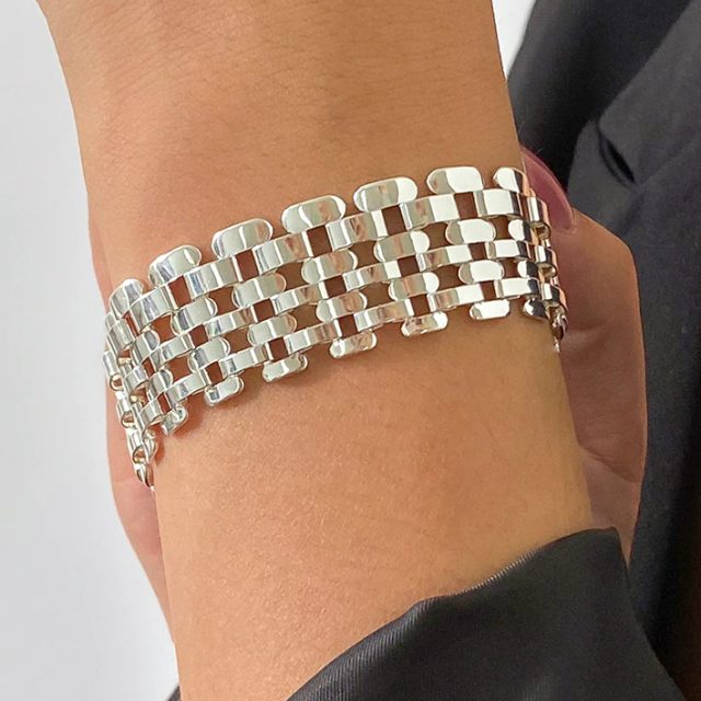 Não é prata… é um bracelete lindo e de boa qualidade, parece chic, indico o produto! Mas não é prata e sim a cor prata