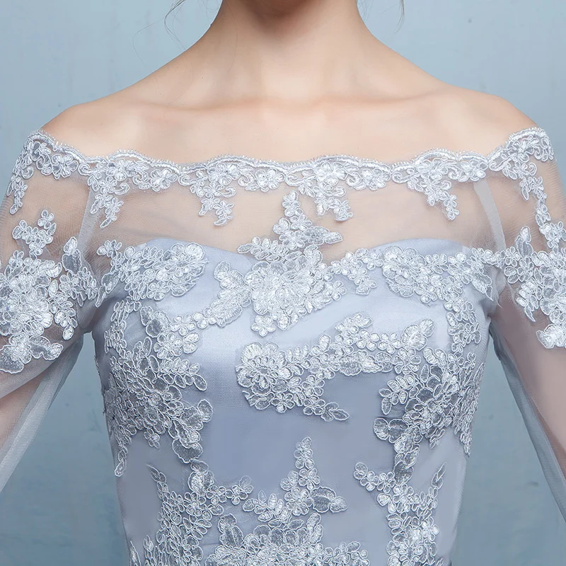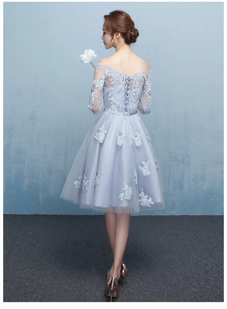 Fleepmart Robe de soiree 2021 Silver Gray lace up off shoulder evening dress with Appliques Party Dresses prom dresses tailor Custom made