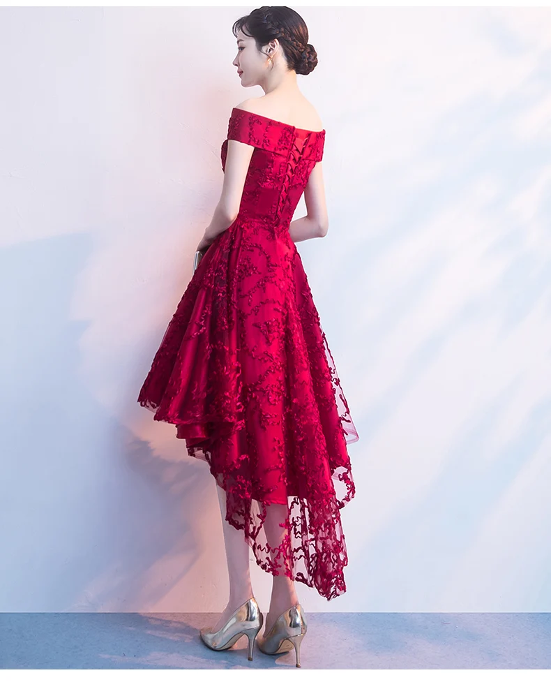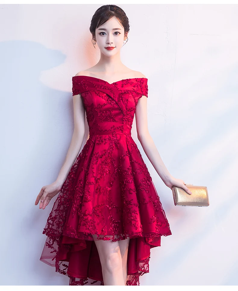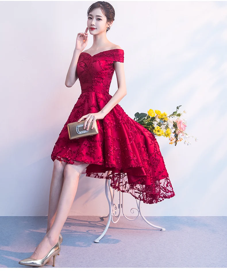 Fleepmart Robe de soiree 2021 Wine Red Elegant Evening Dresses Elegant Short Front Long Back Party Gown Dress Wedding Party Prom Dress