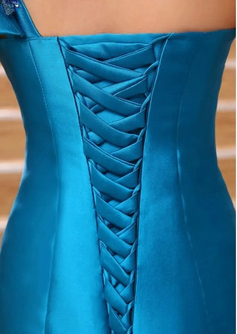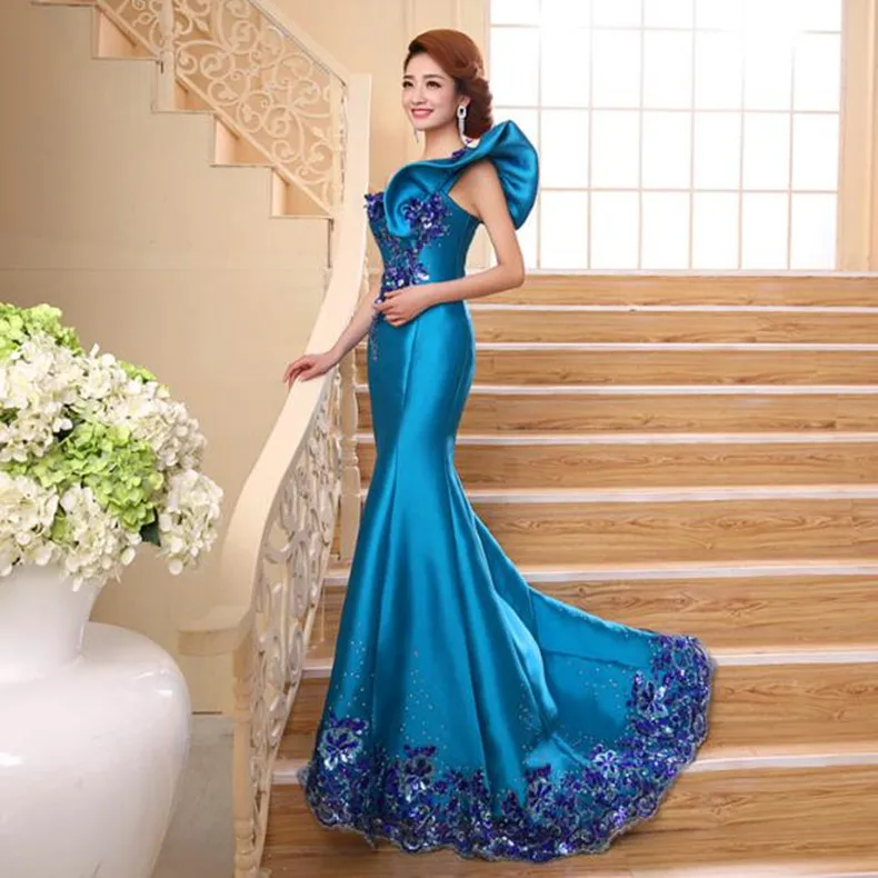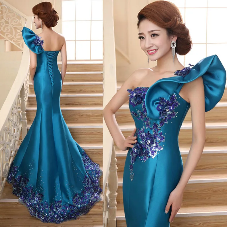 Fleepmart Robe de soiree elegant Blue one shoulder princess mermaid evening dress lace formal vestido de festa prom dresses party dresses– -_- –