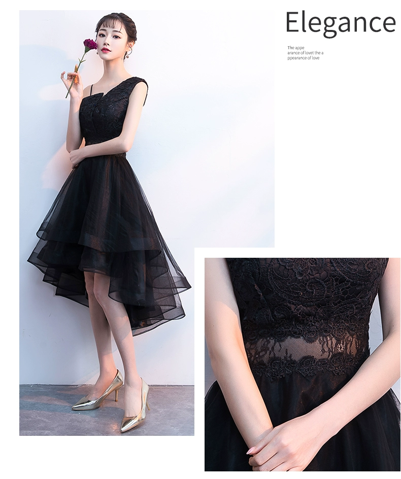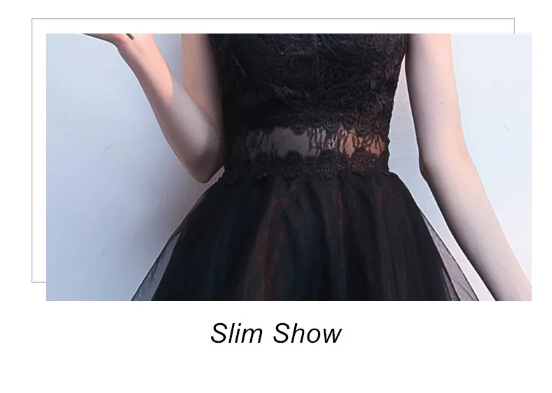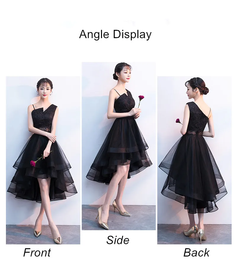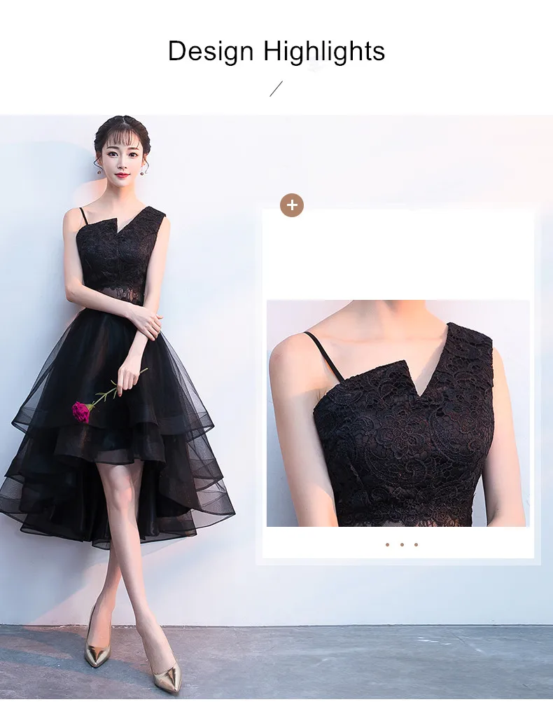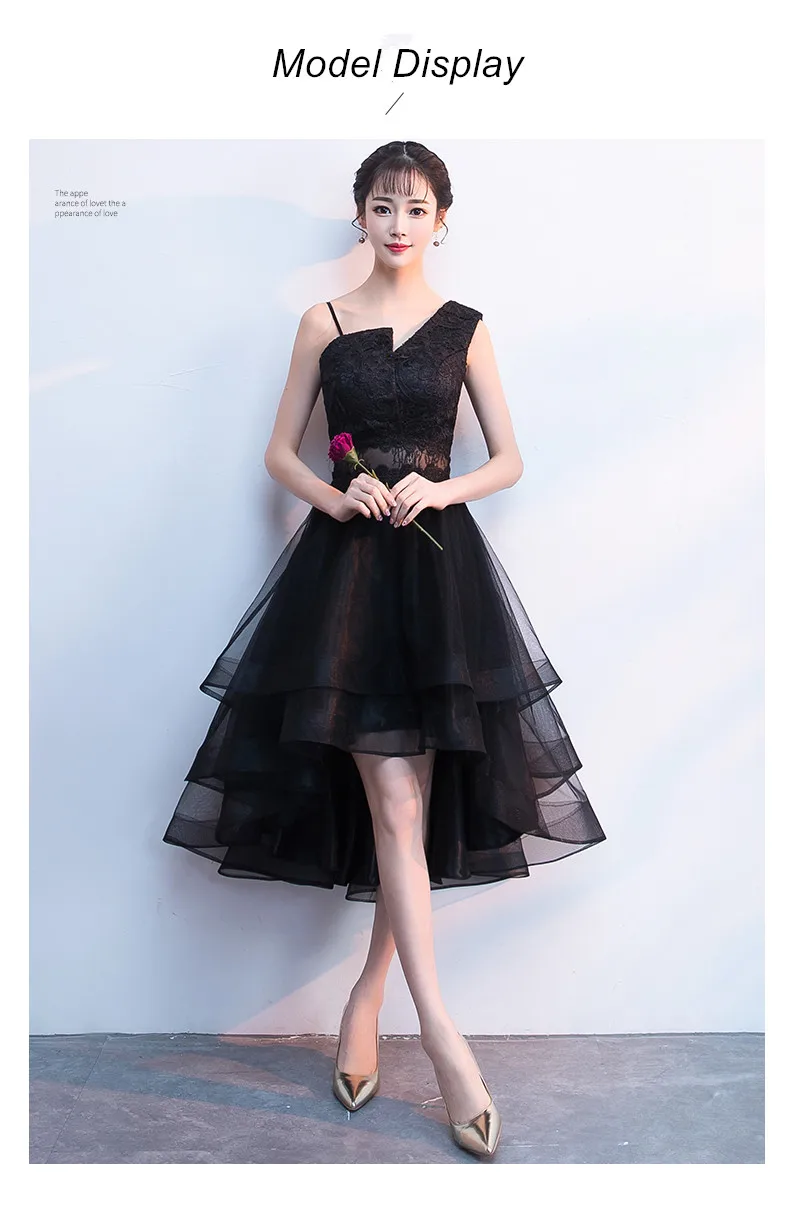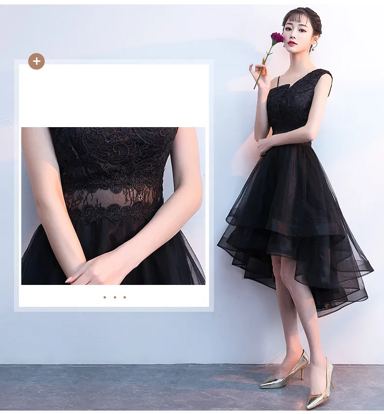 Fleepmart Robe de soiree New Black Elegant Sleeveless lace vestido de festa evening dress Short Front Long Back Party Dresses Prom dresses